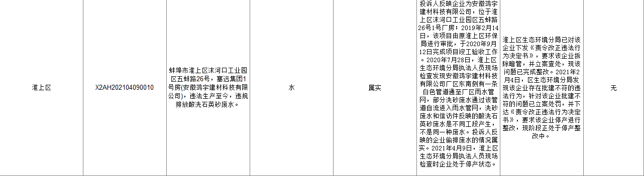 蚌埠市落实中央生态环保督察信访举报边督边改公开情况一览表(第三批)