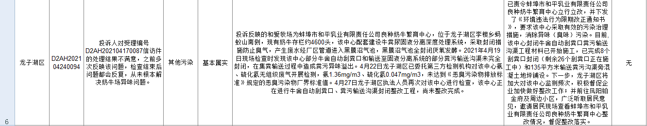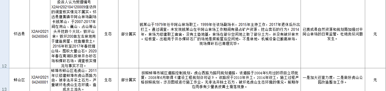 蚌埠市落实中央生态环保督察信访举报边督边改公开情况一览表(第十八批)