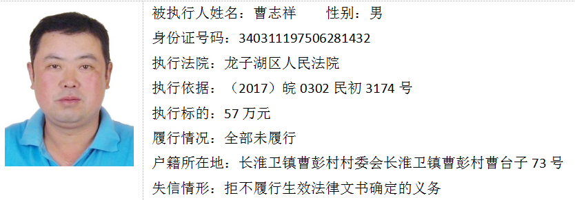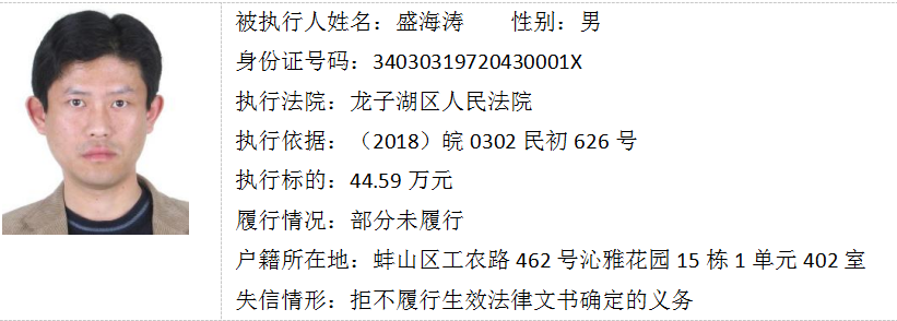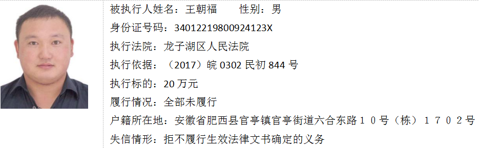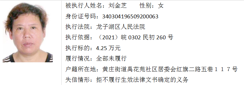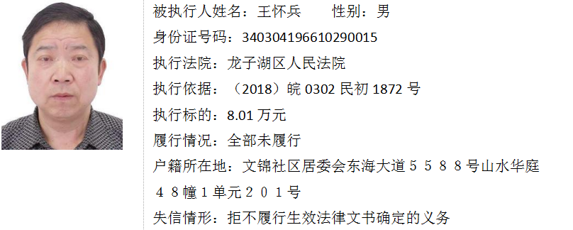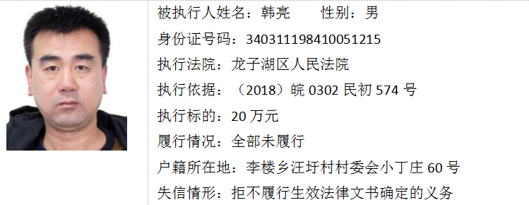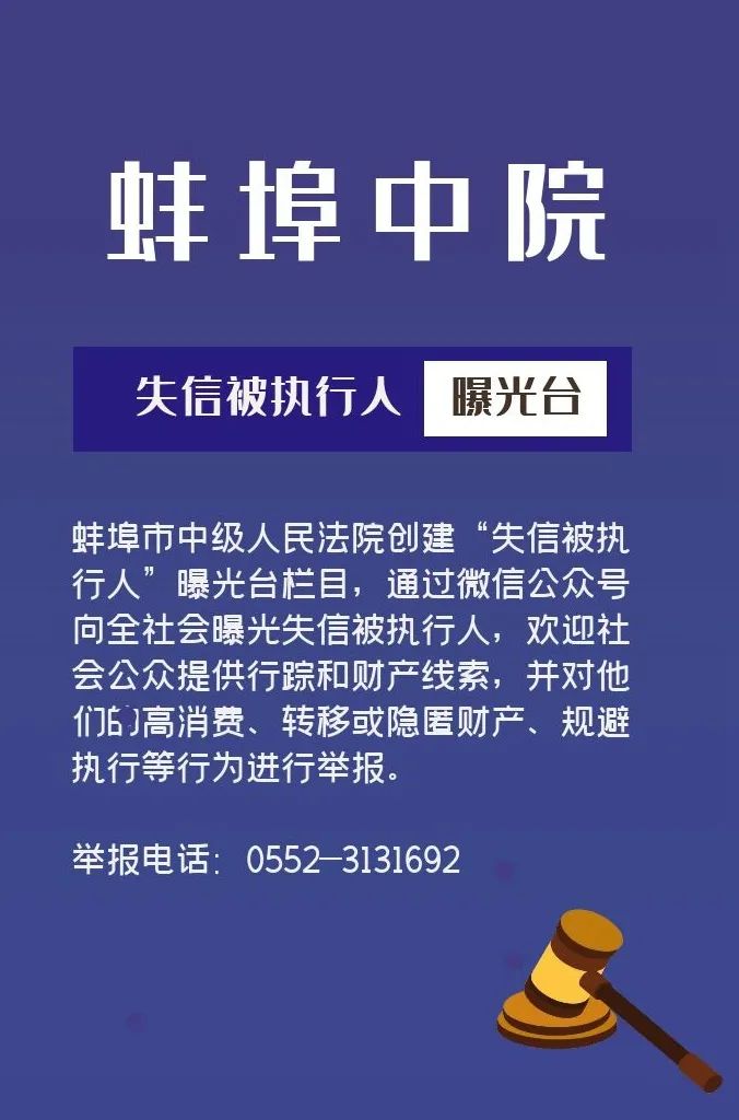 蚌埠法院失信被执行人曝光台(第十六期)