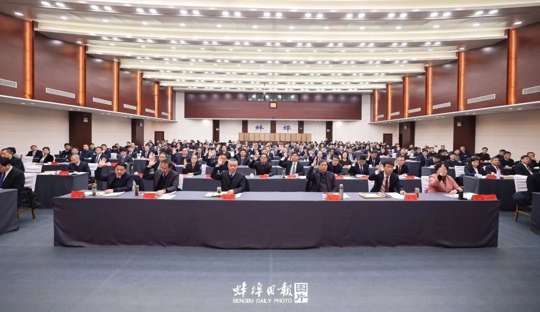 黄晓武强调,实现今年发展目标,要扎实推进十个方面重点工作。要在强化科技创新上实现更大突破,着力壮大创新主体和创新平台、加强科技攻关和成果转化、推进人才引育和体制机制改革,让科技创新这个“关键变量”转化为高质量跨越式发展的“最大增量”。要在构建现代化产业体系上实现更大突破,进一步壮大战略性新兴产业,加快传统产业转型升级,开辟未来产业新赛道,打造高品质服务业,持续推进新型工业化、发展新质生产力。要在招商引资和项目建设上实现更大突破,不断加大招商引资力度,加快项目建设进度,加强服务保障精度,争取落地一批重大项目。要在提升城市能级上实现更大突破,持续完善城市规划布局,深入实施城市更新行动,不断增强县域承载能力,推动各类要素向蚌埠集聚,努力提升城市辐射带动能力。要在全面深化改革上实现更大突破,不断深化重点领域改革,完善落实“两个毫不动摇”体制机制,着力打造一流营商环境,为推动经济社会高质量跨越式发展持续注入强大动力。要在扩大高水平对外开放上实现更大突破,树牢“沿河即沿海”的开放意识,提升对外开放能级,深度融入长三角一体化发展,深入推进甬蚌合作,推动外贸外资稳中提质。要在建设文旅强市上实现更大突破,着力挖掘消费增长潜力、推动文旅深度融合、壮大主流思想舆论,推动蚌埠网红变长红。要在大力推进乡村全面振兴上实现更大突破,全面夯实粮食安全根基,着力做好“三头三尾”工作,深入推进“千万工程”,有力有效推进乡村全面振兴。要在加快绿色低碳发展上实现更大突破,持续打好污染防治攻坚战,加快推进发展方式转型,积极稳妥推进“双碳”战略,奋力打造绿色低碳发展高地。要在提高人民生活品质上实现更大突破,着力保障改善民生,持续增进民生福祉,全面加强基层治理,不断完善“党建引领、一组一会、五治融合”社会治理新模式。