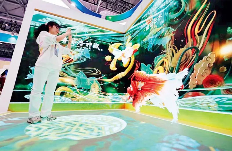 新型显示是新一代信息技术产业的先导性支柱产业,安徽新型显示产业已形成全产业链布局。图为2024年4月1日,在安徽合肥举办的2024国际显示技术大会上,一名观众在体验合肥京东方展出的一款裸眼3D快速拆装折角屏。 合肥日报社供图 张敏/摄
