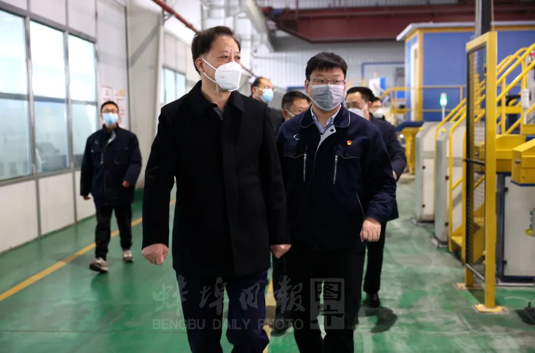 黄晓武先后来到海控三鑫(蚌埠)新能源材料有限公司、蚌埠中建材信息显示材料有限公司,深入生产一线,详细了解企业生产、销售、订单、人员在岗等情况,对节日期间坚守岗位的企业员工致以新春祝福,对大家为蚌埠经济社会发展作出的贡献表示衷心感谢。