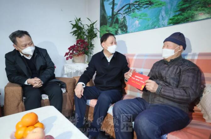 黄晓武先后来到韩元祥、何金良等老同志家中,关切询问老同志的身体和生活情况,提前向他们致以美好的节日祝福。