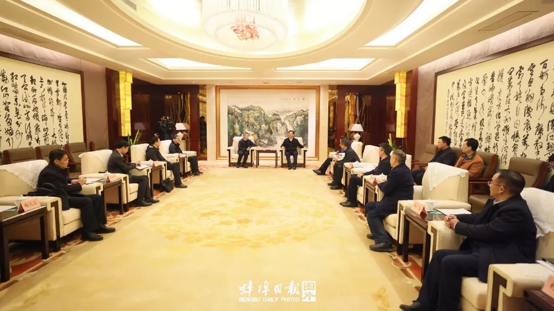 市委书记黄晓武对王峰一行来蚌考察表示欢迎,对国铁集团一直以来支持蚌埠建设发展表示感谢。
