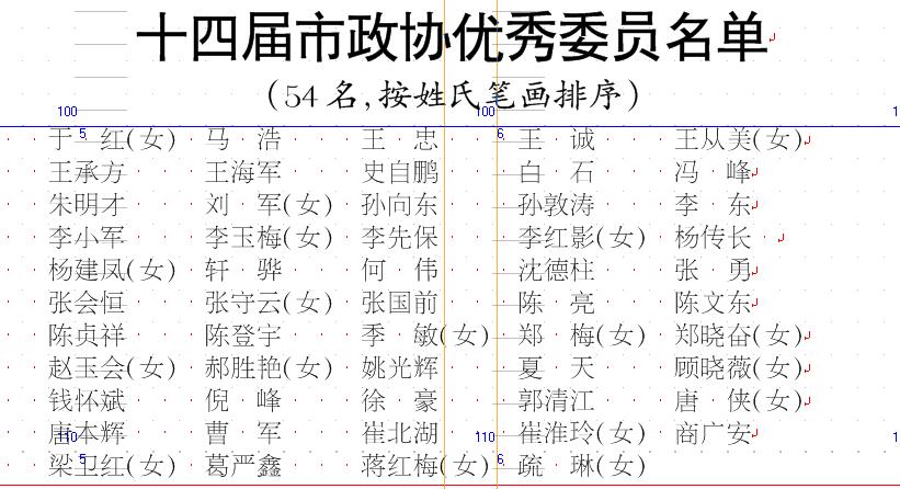 根据《蚌埠市政协十四届优秀委员评选工作方案》,经市政协各专门委员会、各界别活动组推荐,运用委员年度履职考核情况,经市政协主席会议研究,拟表彰于红等54名十四届优秀政协委员,现予以公示,公示时间为5个工作日。