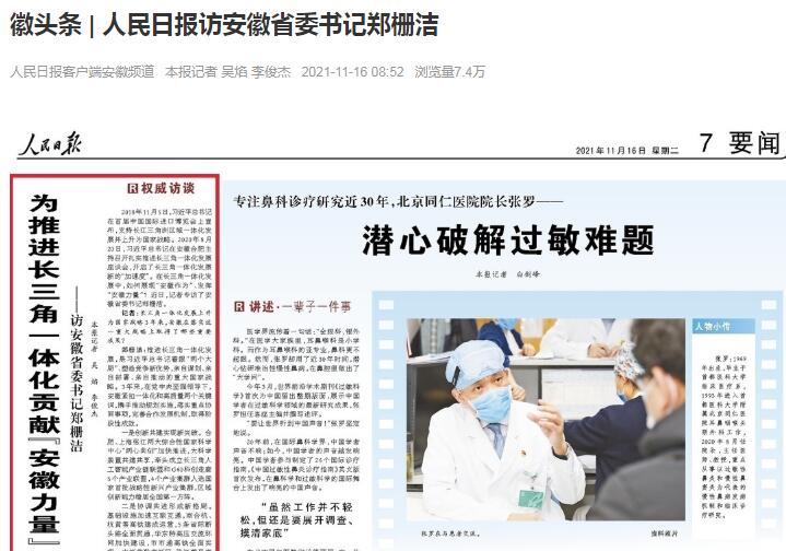 徽头条 | 人民日报访安徽省委书记郑栅洁