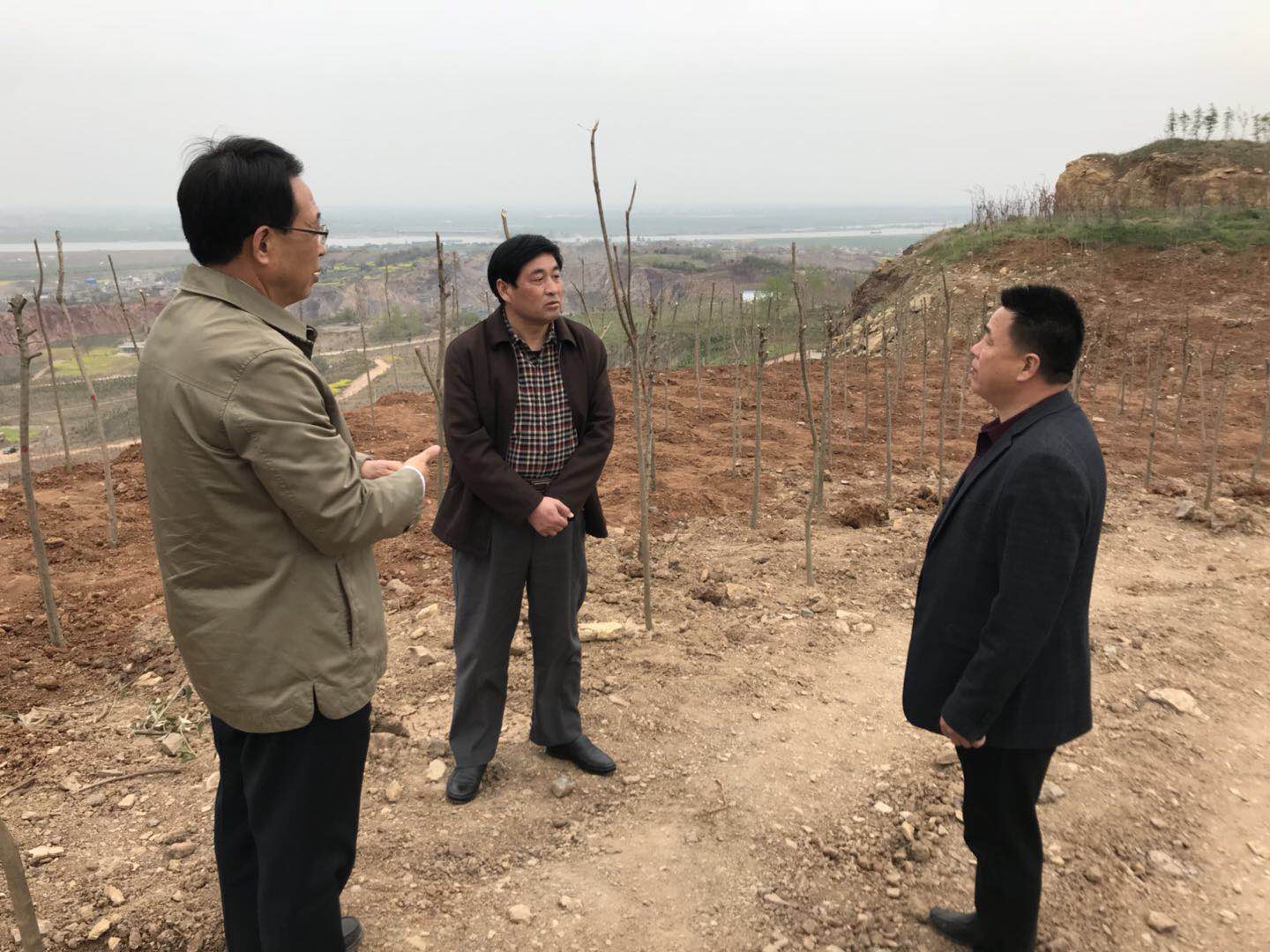胡朝荣登上大峰山,实地查看并详细了解了大峰山及其周边区域生态环境治理情况,看到大峰山已经披绿挂翠,生机勃勃,当地百姓穿梭山上山下,种植树木,胡朝荣非常高兴,叮嘱要加强他们的人身安全以及劳动报酬保障。