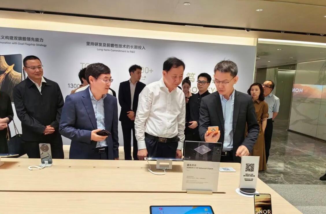 5月11日下午,黄晓武赶到华为技术有限公司参观考察企业展厅,详细了解华为成长历程、业务领域、发展战略等情况,并与华为投资控股有限公司董事会成员查钧和华为企业BG Marketing与解决方案销售部总裁、商业与分销业务部总裁陈帮华进行了工作座谈。