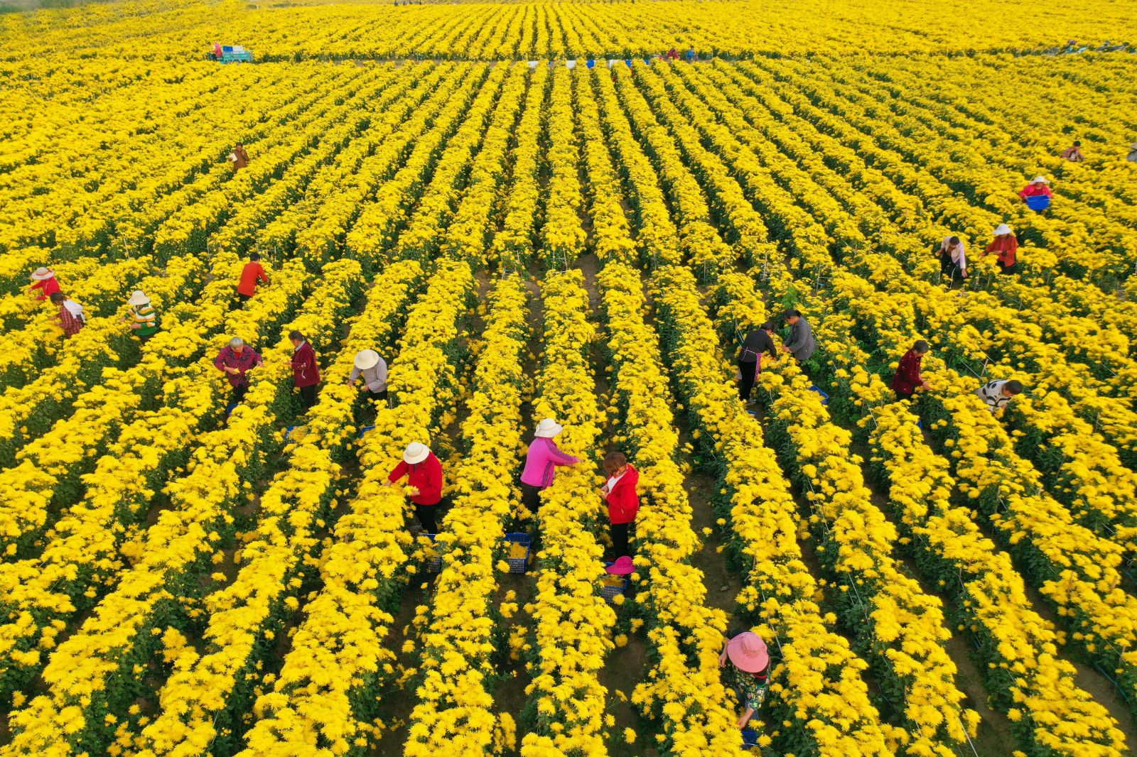 菊花盛开十里香,农民采摘致富忙。(资料图片)
