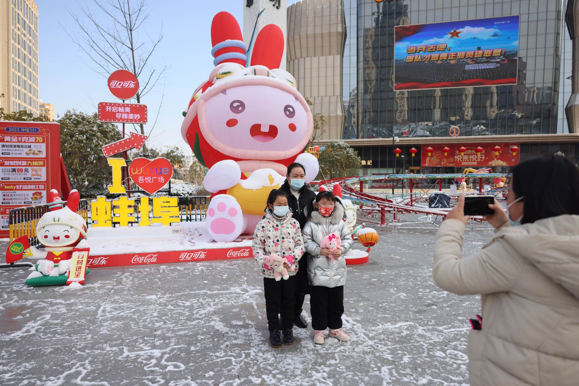 随着兔年春节的临近,蚌埠的年味越来越浓,日前,记者看到各种兔元素的造型小景等出现街头,市区各大商超促销商品纷纷上架,各式各样的春联、窗花、挂件等喜庆用品也进入热销期,到处呈现出一片喜庆祥和的节日氛围。 融媒体记者 刘 晨
