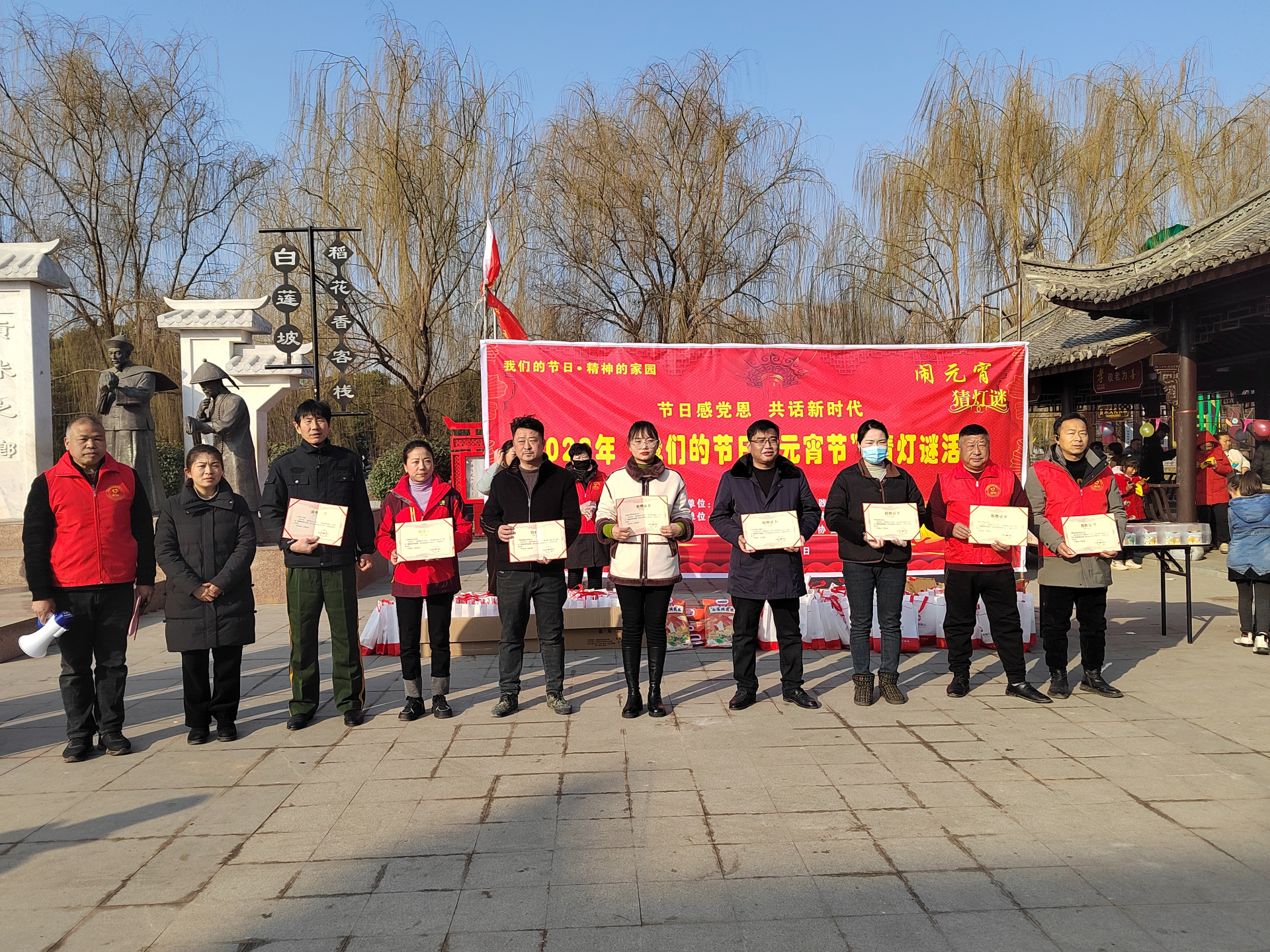 2月5日上午,2023年“我们的节日·元宵节”猜灯谜活动在怀远县白莲坡镇政府广场举办。