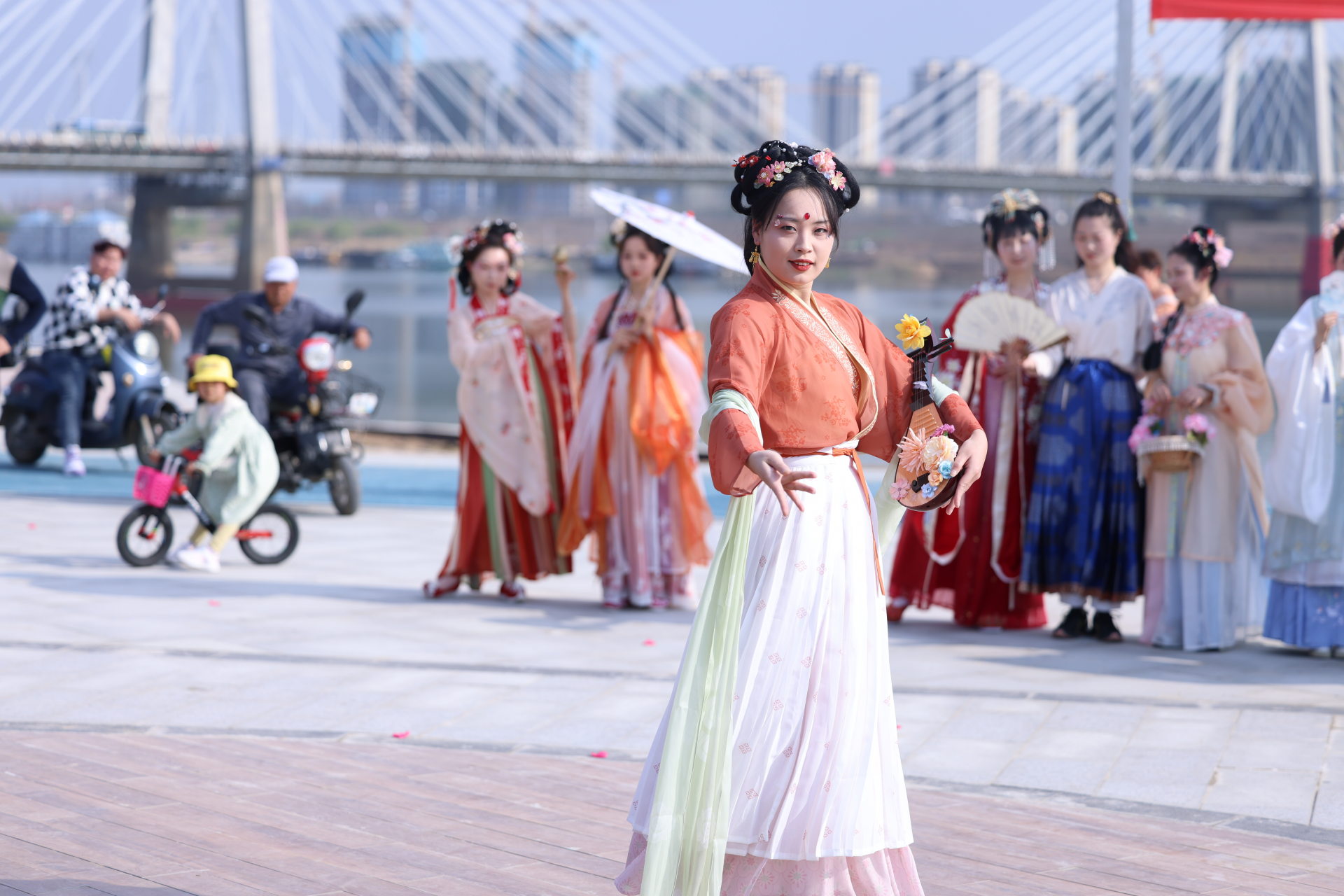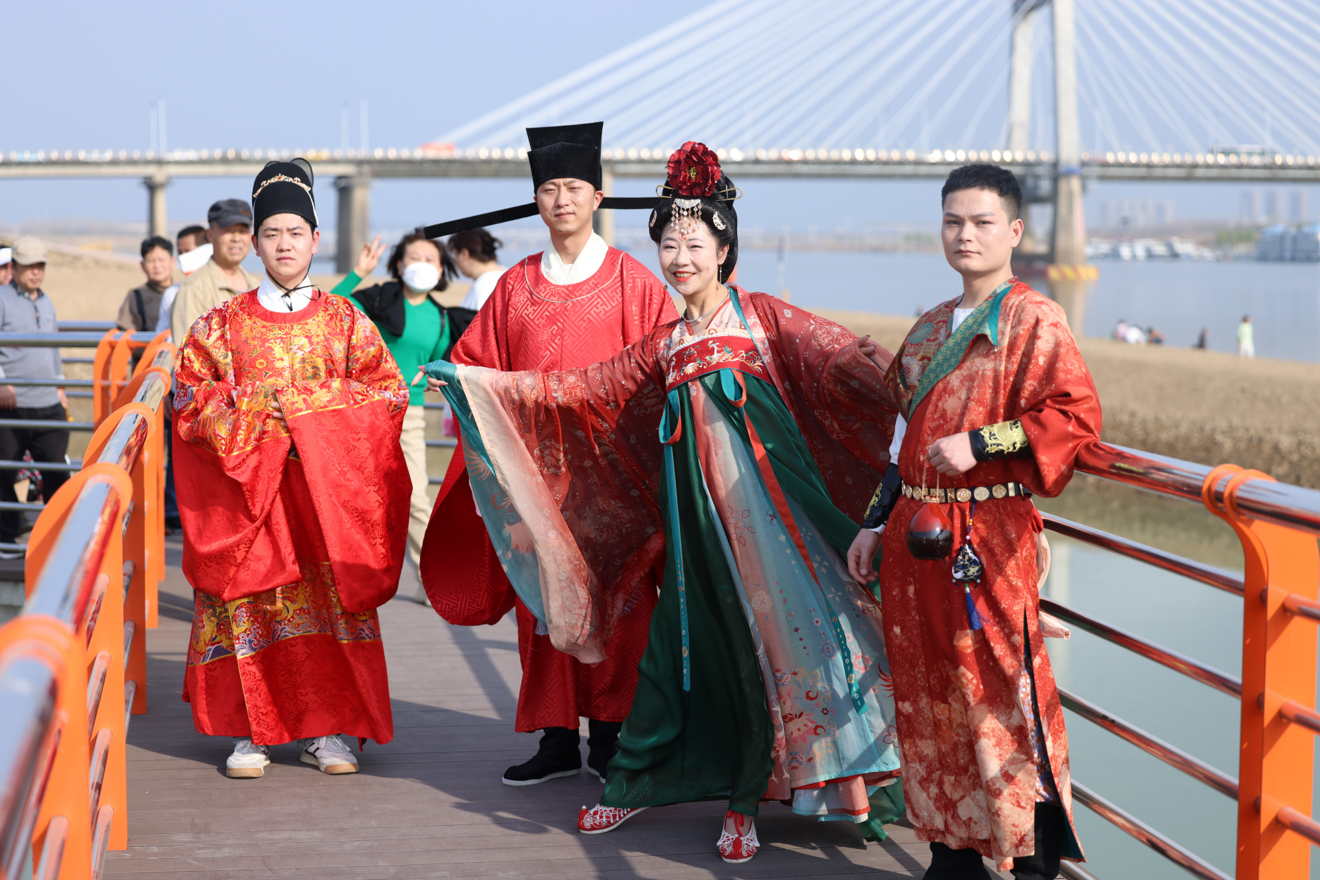 3月11日下午,一场别具一格的汉服秀在靓淮河工程北岸举行,身穿各式汉服的汉服爱好者在靓淮河各个景点中畅游,表演汉服舞蹈《繁花》、《双面燕洵》,点“靓”淮河两岸。