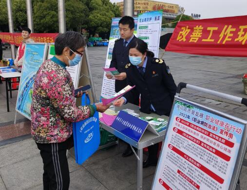 4月25日至5月1日是第21个《职业病防治法》宣传周,4月25日,市卫生健康委在淮河文化广场举办宣传周启动仪式并开展宣传活动,市第五人民医院(市职防院)承办。今年《职业病防治法》宣传周的主题是“改善工作环境和条件,保护劳动者身心健康”。医务人员现场向广大市民宣传职业健康知识,为前来问询的市民测量血压、开展义诊服务。