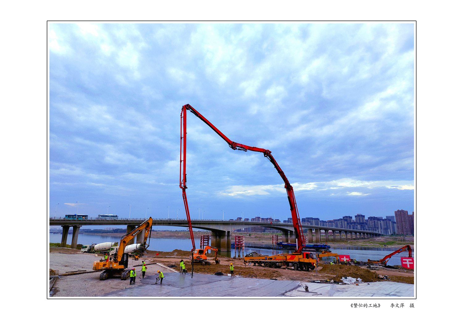 (淮河南岸)《繁忙的工地》李文萍 拍于朝阳桥东靓淮河工地