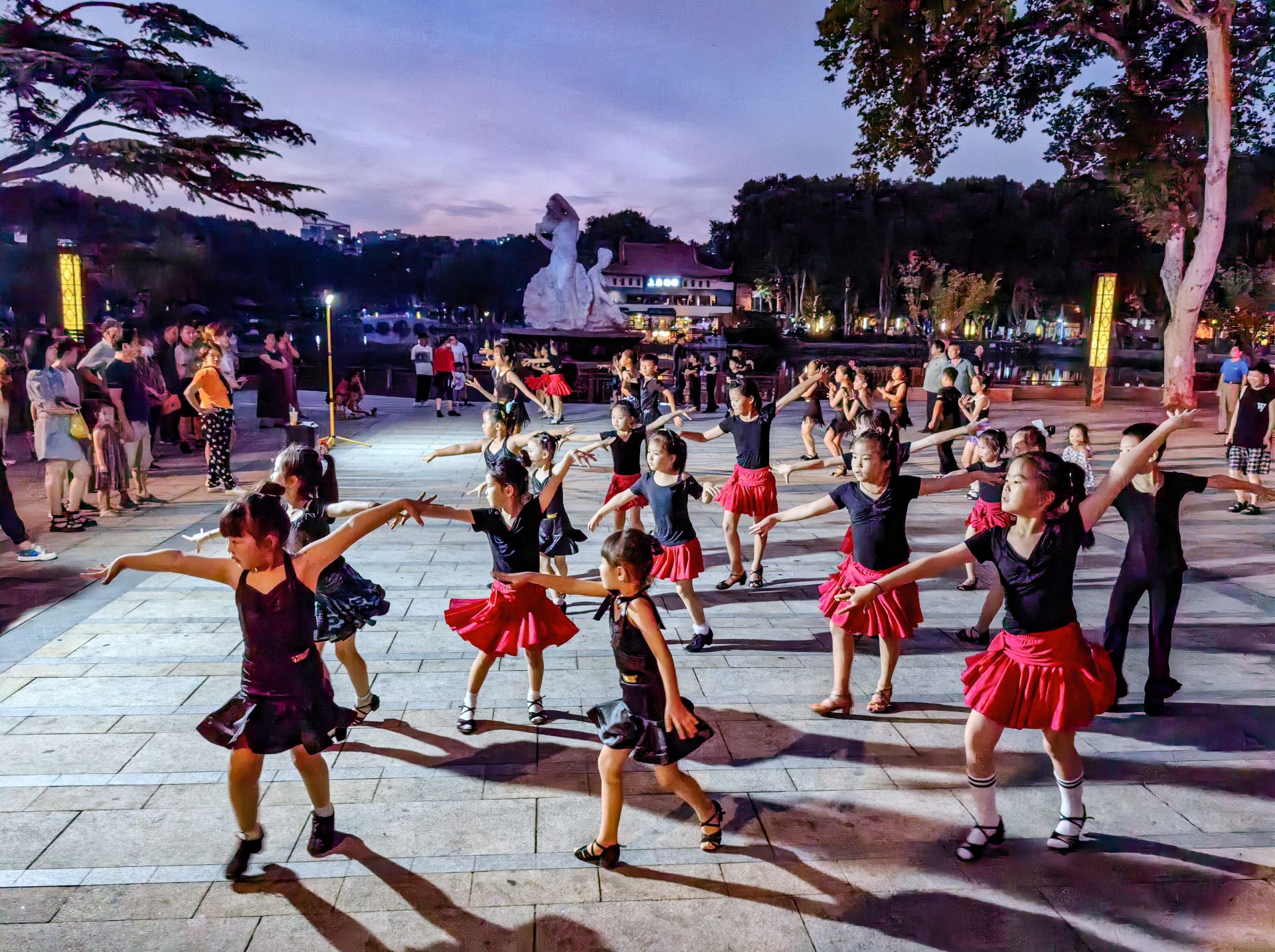 7月4日晚,津浦大塘公园,学习拉丁舞的孩子引路人围观。