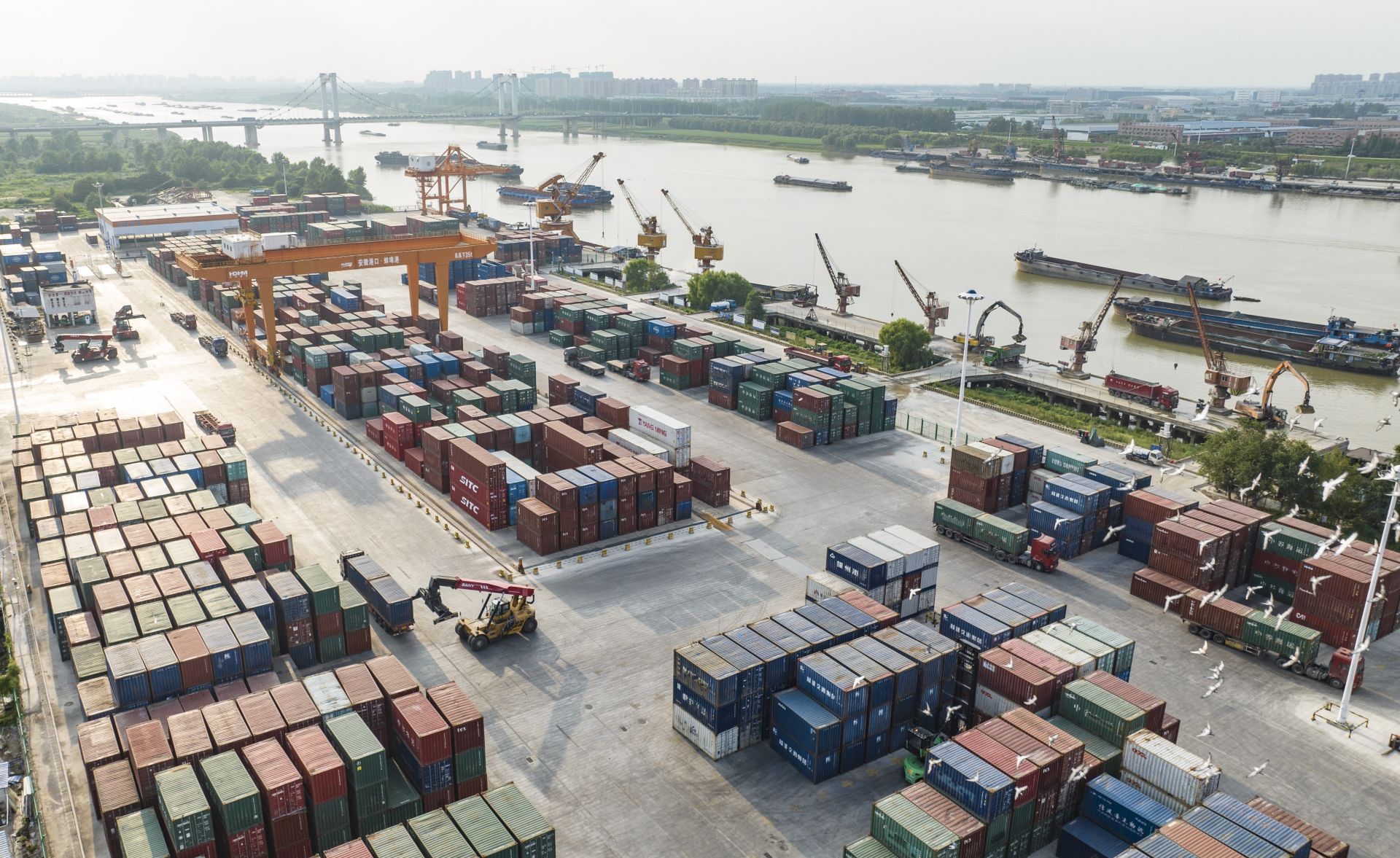 蚌埠发布客户端讯 近日,蚌埠港国际集装箱码头有限公司单日集装箱作业量再创新高,单日完成653标箱,日均增幅可达40%。
