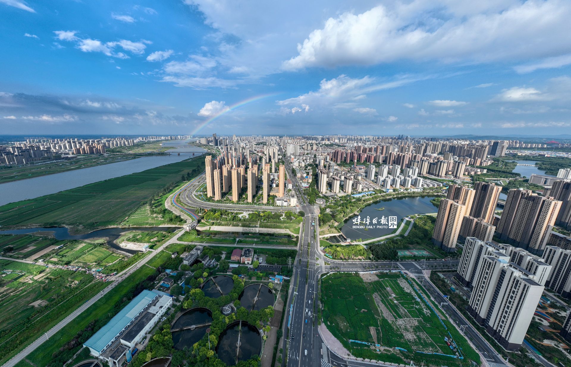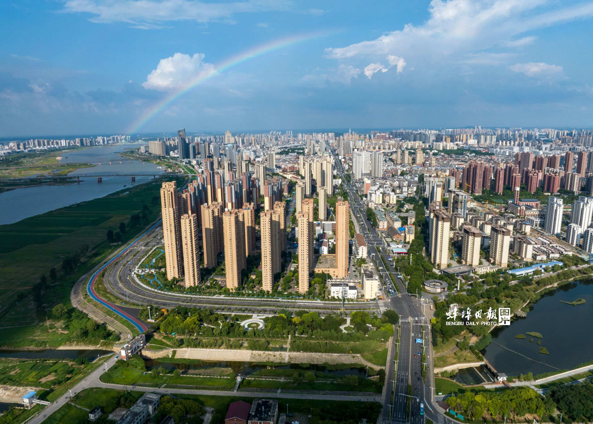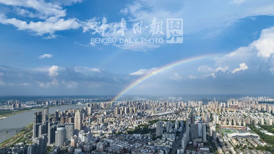 7月27日下午,一场阵雨后,淮河上空惊现彩虹奇观,绚丽多彩,美不胜收。