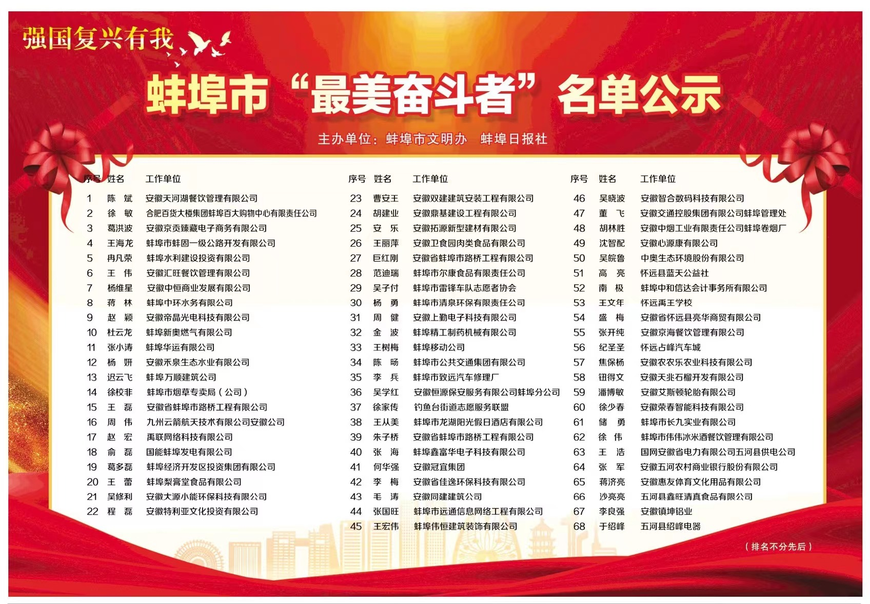 一年多来,我市企业界和社会组织界涌现出一批既能推动蚌埠经济发展、又能履行社会责任的最美奋斗者,他们爱党爱国、守法经营、创业创新,积极回报社会,切实履行社会责任,为奋力开创蚌埠市高质量跨越式发展新局面贡献力量。