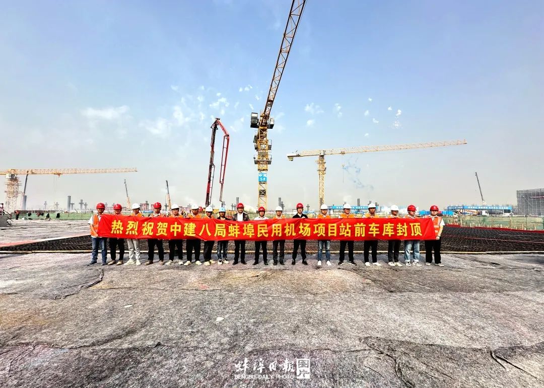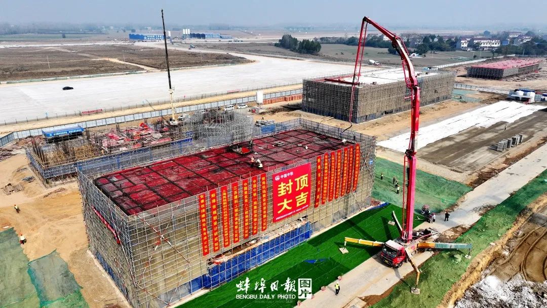 11月3日上午,蚌埠民用机场航站区站前车库和公安用房封顶。据介绍,这是继航站区首个主体结构封顶的消防站之后,再有两栋单体建筑封顶,为后续二次结构、装饰工程施工提供了良好作业条件,标志着机场航站区建设按下“加速键”。