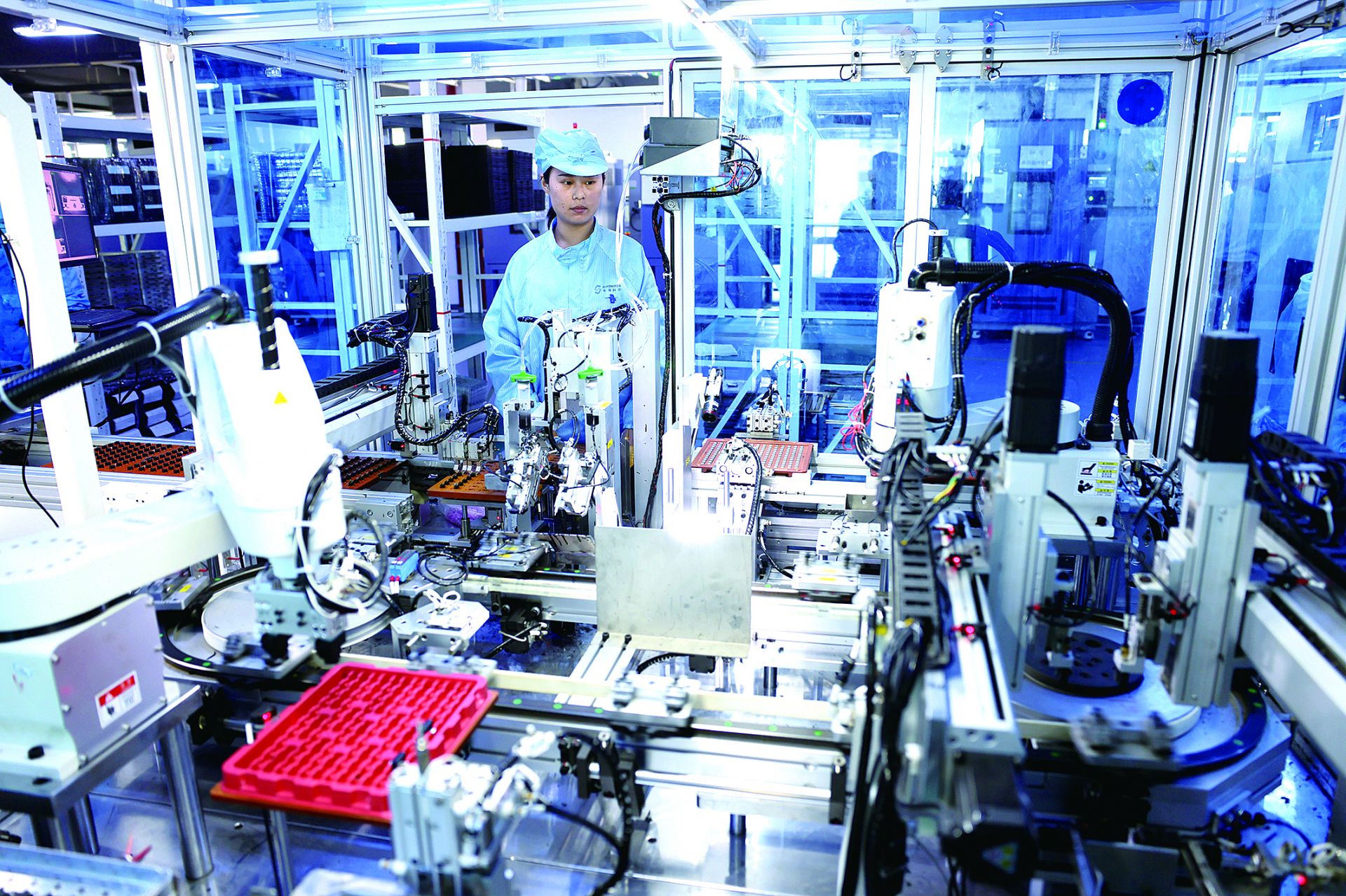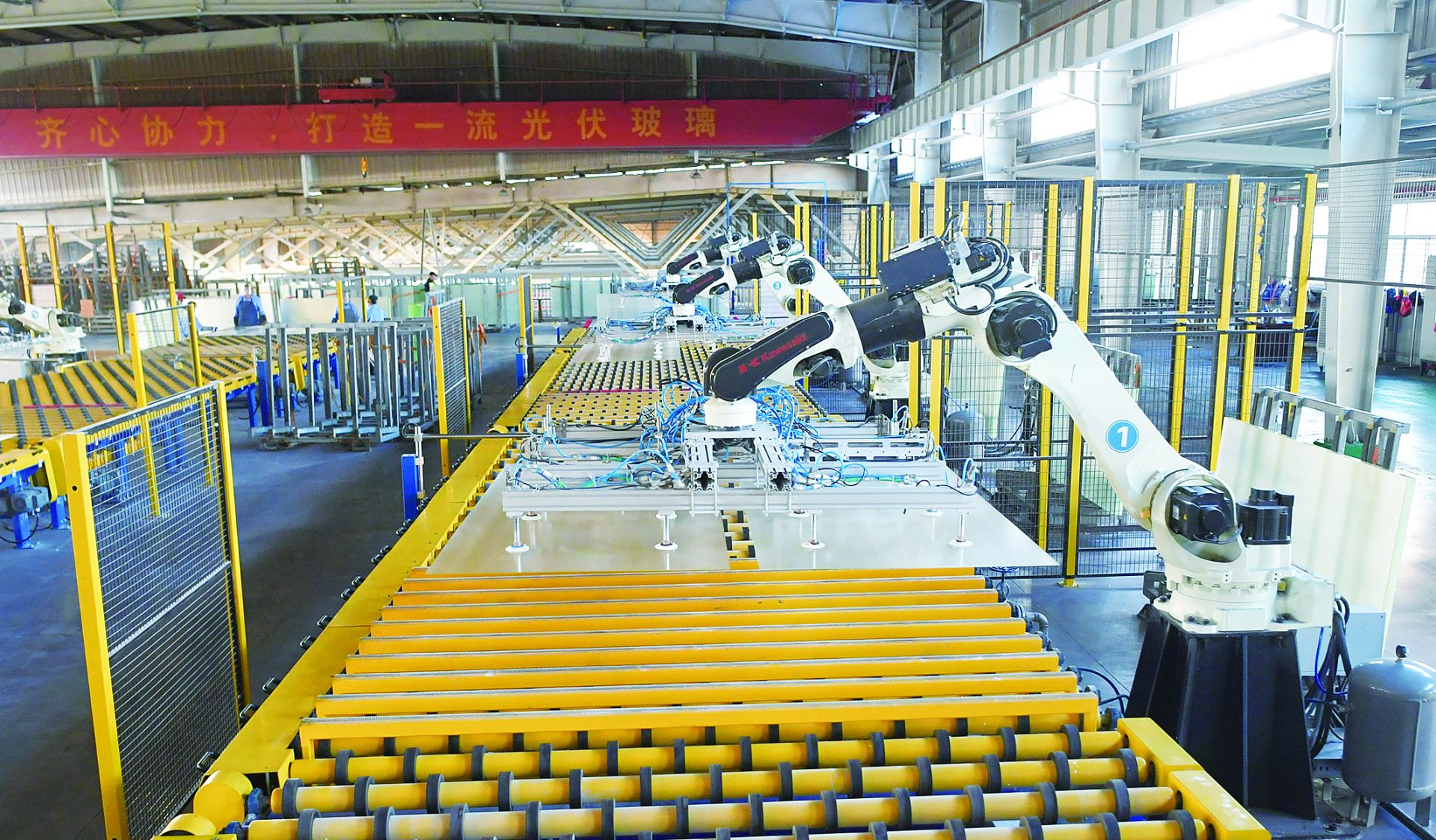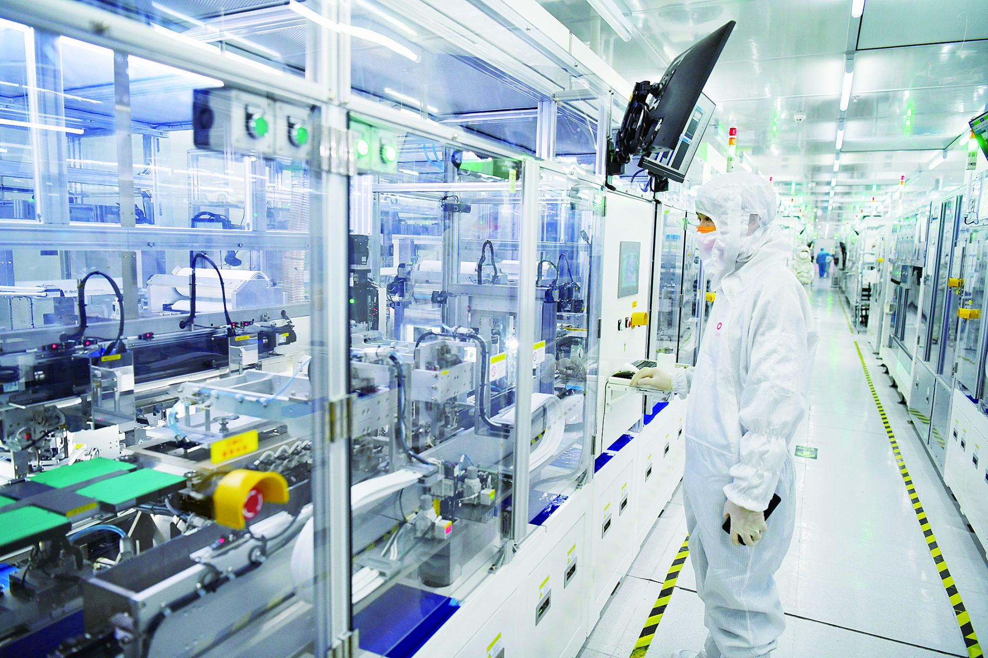 日前,蚌埠国显科技有限公司生产车间,技术人员查看设备运转情况。