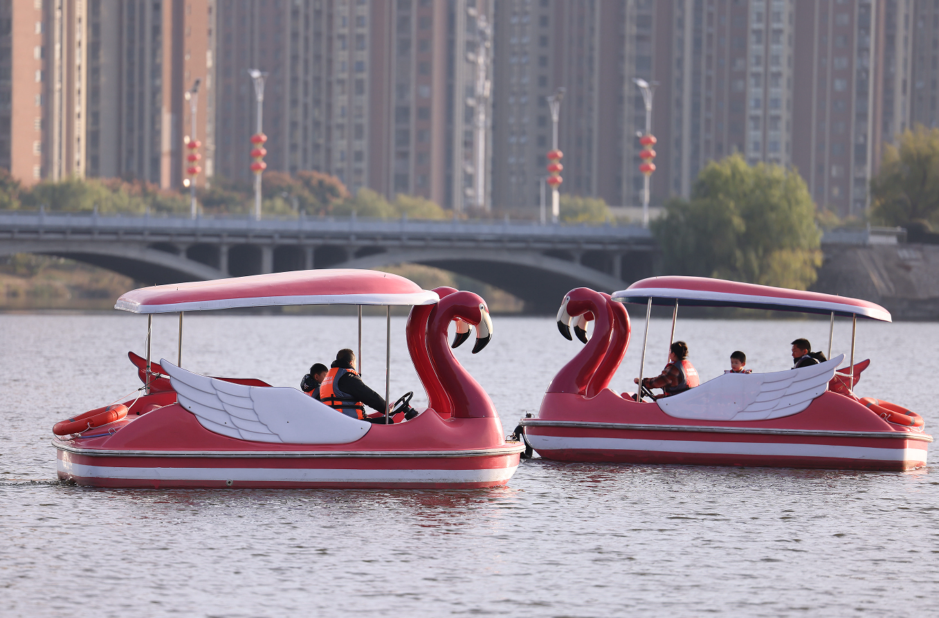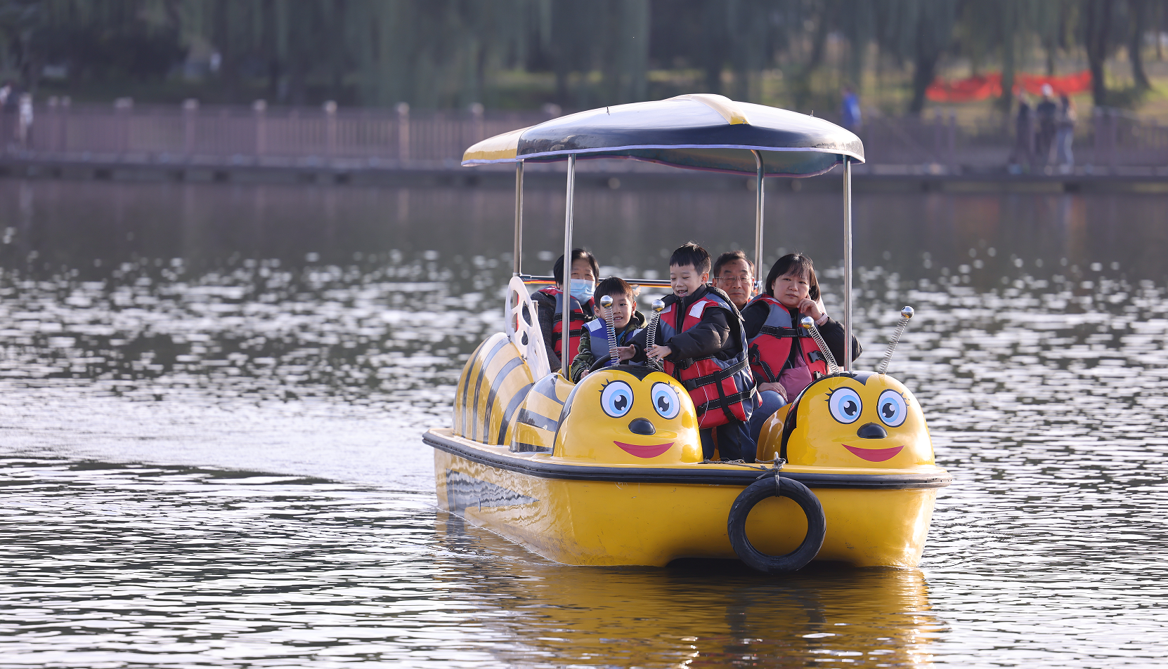 11月18日下午,蚌埠市张公湖游船如织,众多市民在冬日暖阳下感受湖光山色美景。蚌埠初冬美景最迷人,这个周末,我市气温进入一个上升时段,最高气温在20℃附近,特别适合本地游玩。