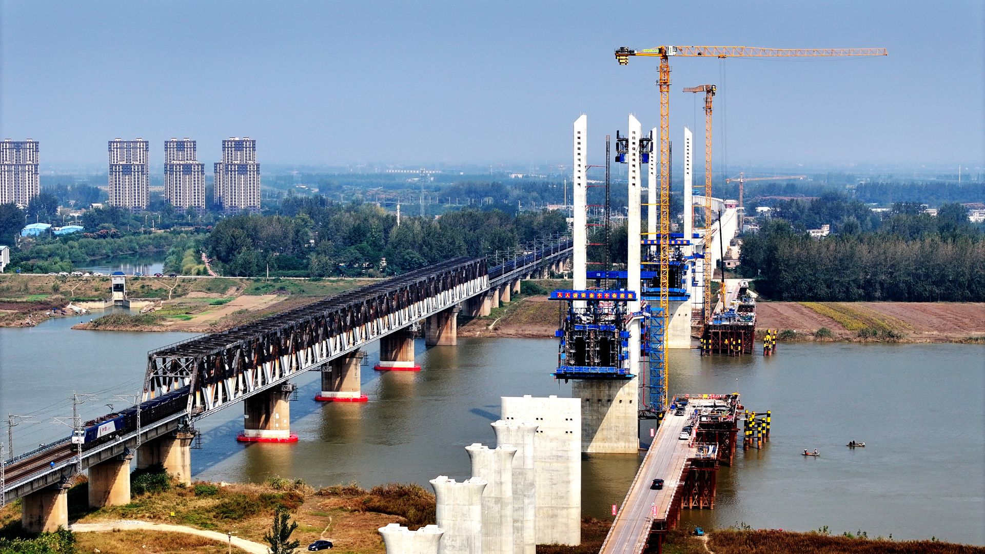 正在建设中的淮宿蚌铁路桥。