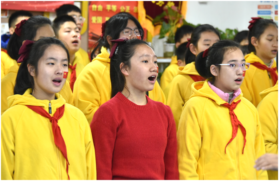 青春歌飞扬,红歌颂祖国。12月11日,蚌埠第一实验学校初中部举行“唱支红歌给党听”为主题的校园红歌会活动,同学们唱响红色歌曲,传承红色基因,凝聚奋进力量。图为七(5)班同学们在演唱《我的祖国》。