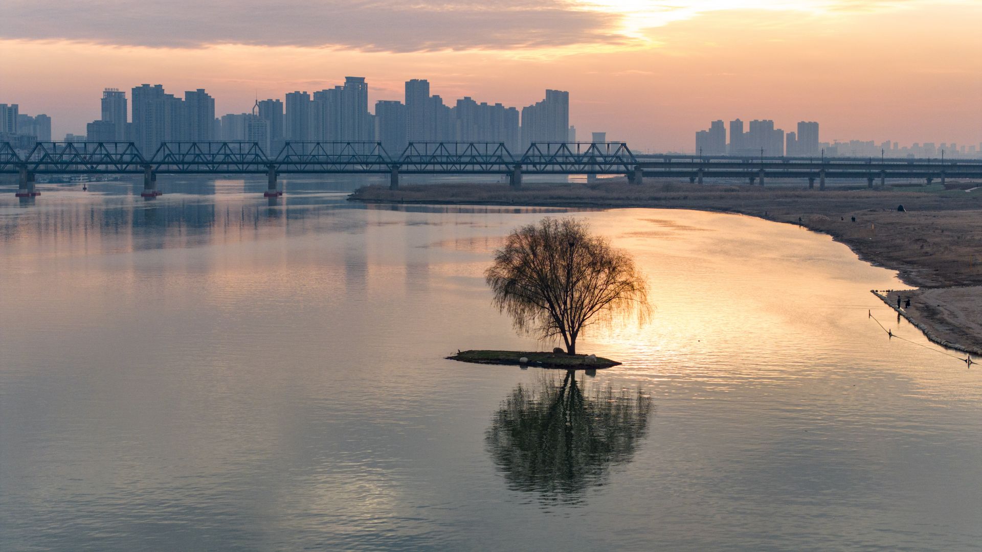 冬日晚霞映淮河