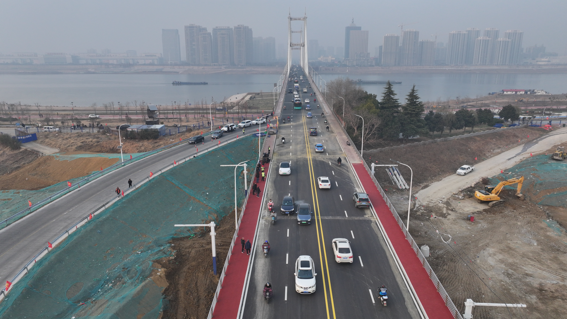 12月27日下午4时许,蚌报融媒体记者驱车来到解放路淮河大桥南,看到施工路段桥面已恢复正常通行。该项目系滨河南路(解放一路-新城路)道路工程重要施工内容之一,由市重点工程建设管理中心组织建设,施工单位为安徽中旭环境建设有限责任公司。据施工单位项目生产经理常云飞介绍, 解放路淮河大桥自9月10日起实行交通管制施工以来,为尽快恢复面通车,参建各方采取自我加压、倒排工期、24小时施工等多种措施,确保滨河南路下穿解放路淮河大桥工程顺利推进,比原预计工期2024年1月8日提前了12天。