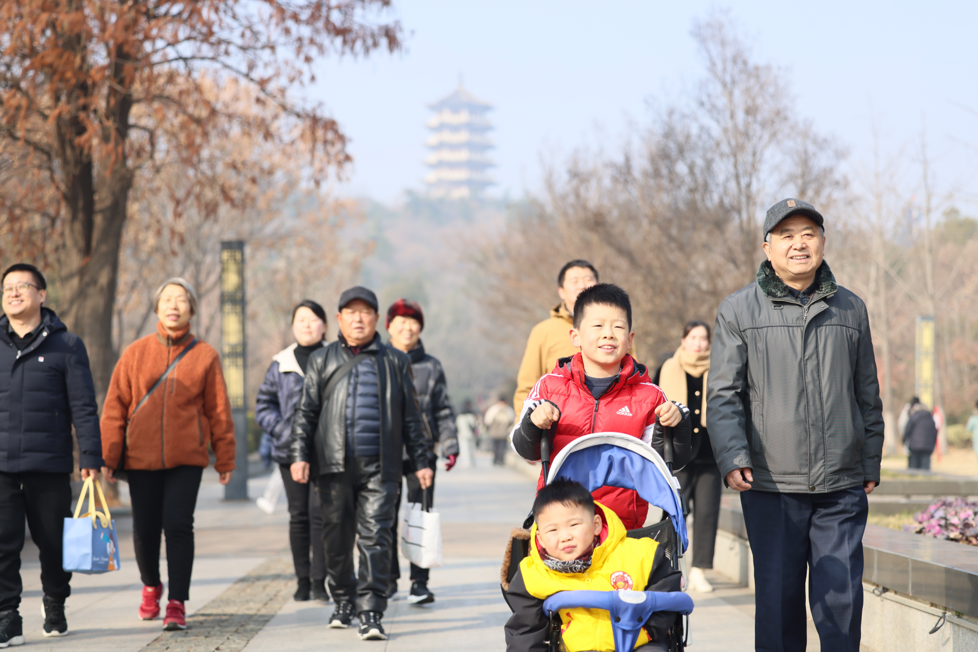 12月31日上午,张公山公园游人如织,众多市民在冬日暖阳下感受湖光山色美景,打卡留念2023年。这个周末,我市气温稳定,最高气温在10℃附近,特别适合本地游玩。融媒体记者 刘晨