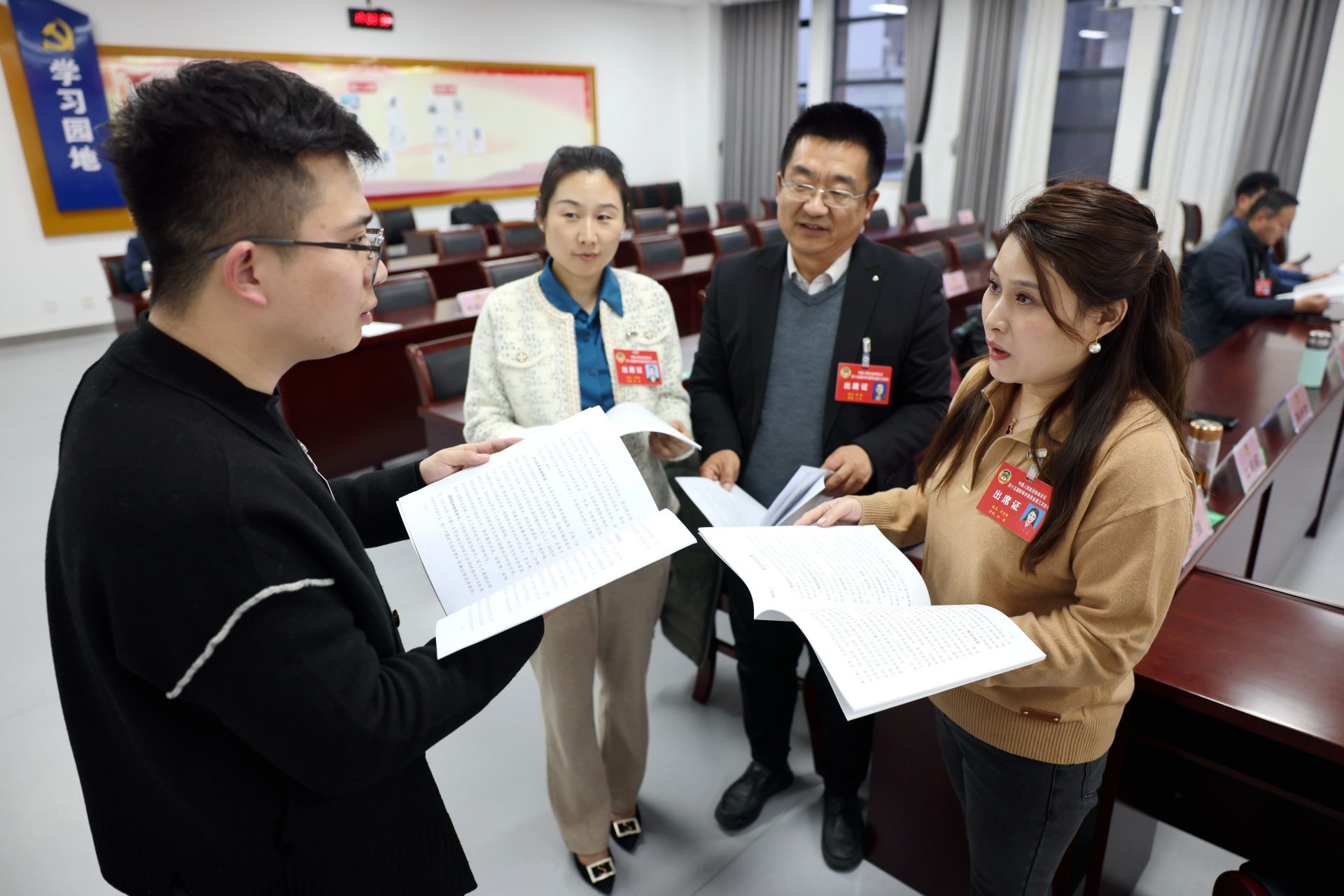 1月17日下午,出席市政协十五届三次会议的政协委员在会间休息时讨论。