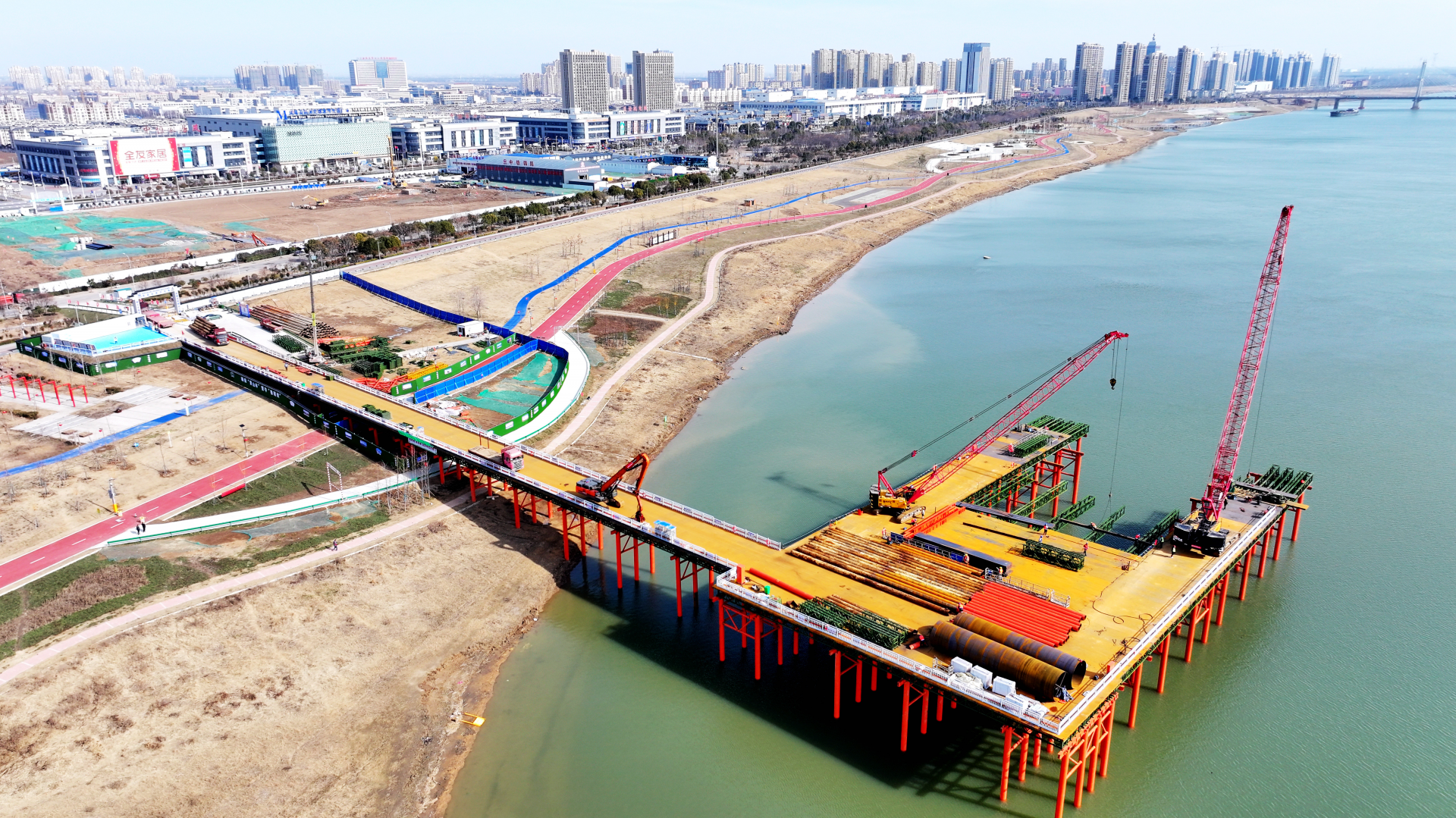 中铁四局蚌埠延安路大桥及接线工程项目副经理梅超告诉记者,目前延安路大桥及接线工程进展顺利,北岸正在进行钻孔平台施工,按目前进度本月底可完成全部栈桥平台施工,南岸正在进行钻孔平台施工,预计春节前完成南北两岸全部栈桥平台施工。