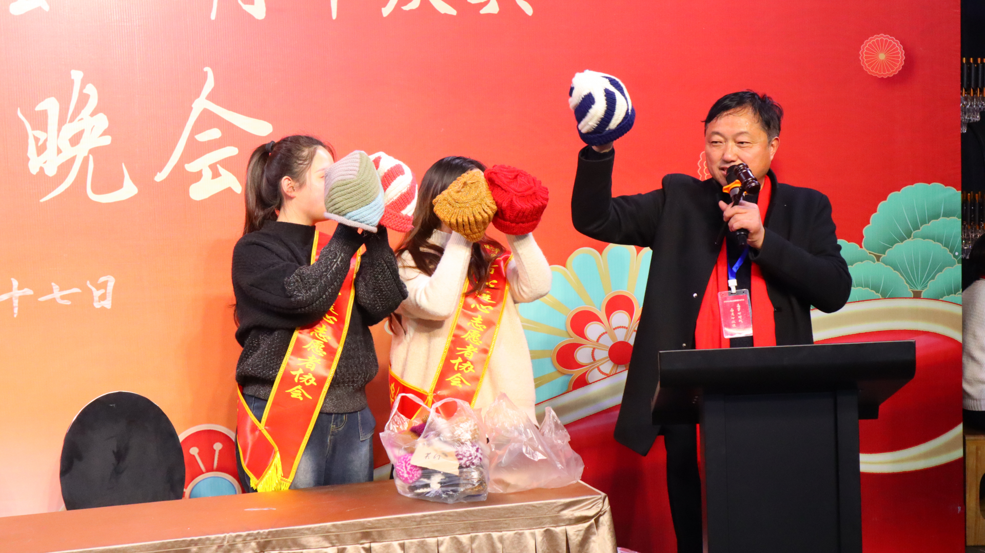 晚会现场,心连心志愿者协会为协会志愿者颁发优秀志愿者奖、特别奉献奖、勇毅前行奖等荣誉。协会举行慈善拍卖会,将残疾人邓传飞亲手做的手工艺品拍卖给在场的爱心人士,共计拍卖13件作品,筹集1460元转交给邓传飞。同时,爱心企业代表为困难家庭举行一对一捐赠2000元。