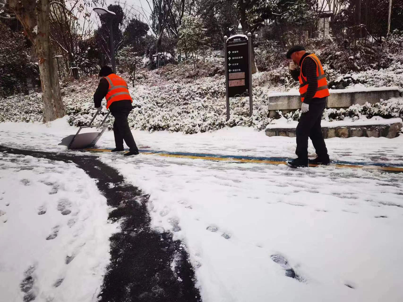 昨日的一场大雪给市民的出行带来了诸多不便。面对天气变化,园林部门迅速行动,积极应对,确保市民的出行安全。