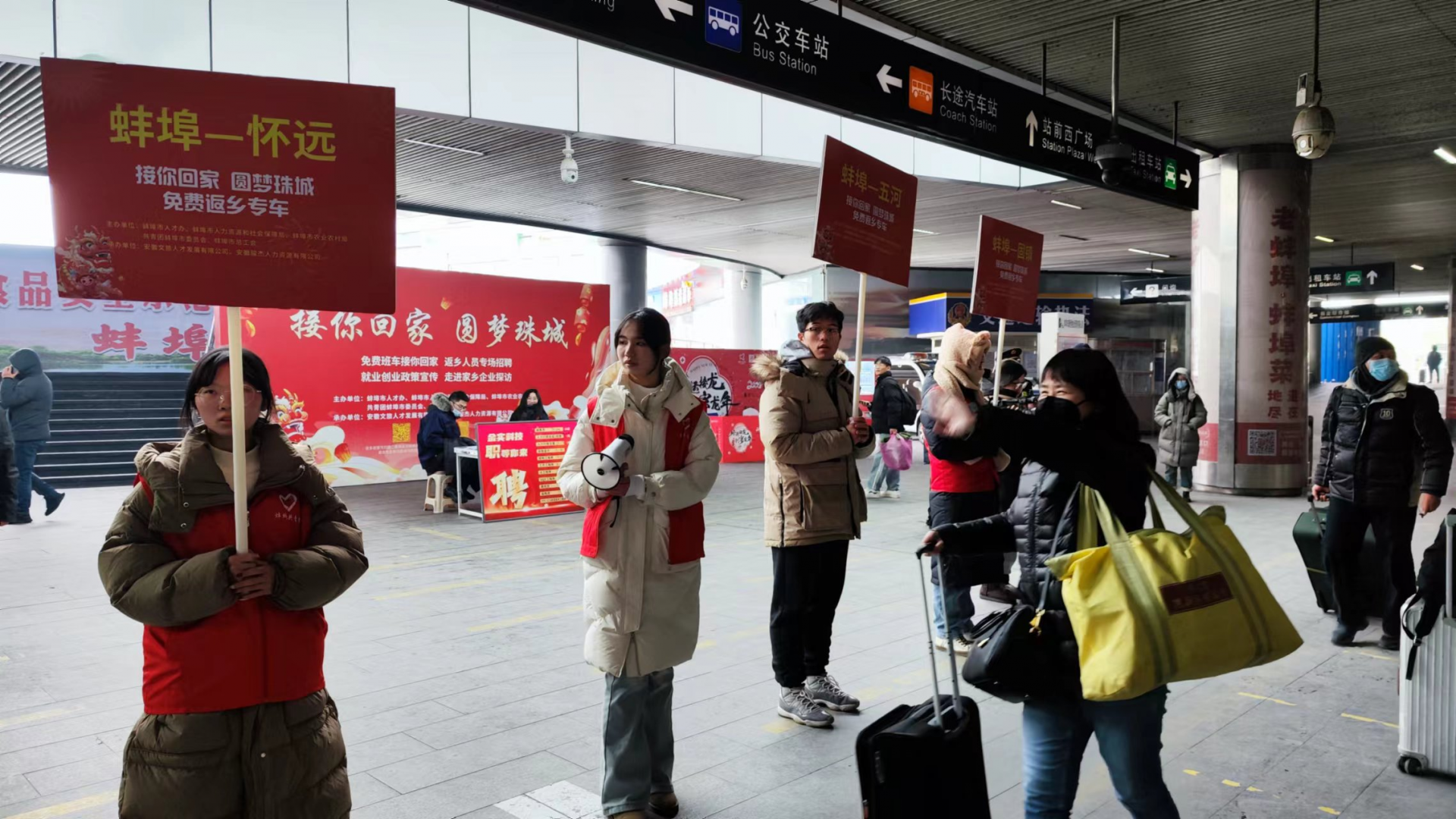记者从市人社局了解到,2月6日至8日,我市在蚌埠高铁南站为返乡人员提供全方位的“接你回家”服务,每个县区每天上午下午各三个班次的大巴车将在高铁南站南出口统一停放,悬挂横幅标语、统一标识,免费接送外出返乡人员乘车至怀远、五河、固镇汽车站。
