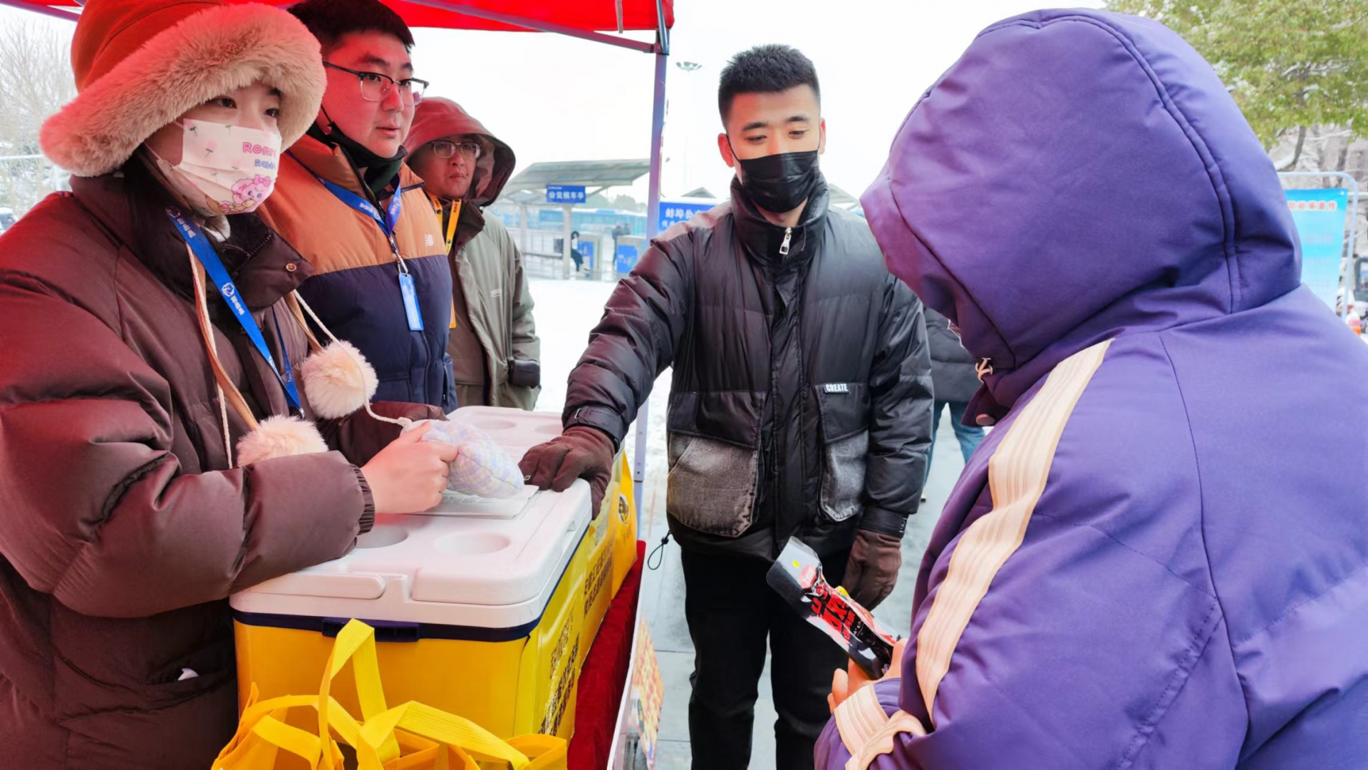 记者6日上午在高铁南站看到,出站口处,就有志愿者高举“接你回家,圆梦珠城,免费返乡专车”字样的大红指引牌,有需求的返乡人员跟随志愿者的引导,向南走200米左右即可到达临时休息区。这里提供免费甜啦啦奶茶,有蚌埠特色小吃免费品尝,还有书法家现场挥毫泼墨书写春联、蚌埠特色卤味小吃现场赠送、还有就业政策宣传、家门口就业机会推荐、社保卡政策讲解等。据了解,一上午的时间,活动已送出卤味小吃100多份,赤豆小元宵100多碗,煎饺烧卖等小吃近200份,甜啦啦奶茶近200杯,春联近300副。