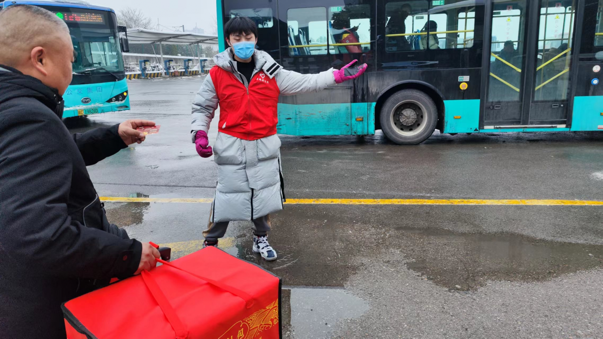 “本来因为天气原因,我非常担心能不能顺利回家,昨天看到了有这个活动太开心了!今天回来下了车就被大蚌埠的热情感动了,一路各种服务,吃着喝着拿着上了回家的车,太暖心了!”怀远县的返乡人员高启航说,自己感觉到了家乡的温暖。
