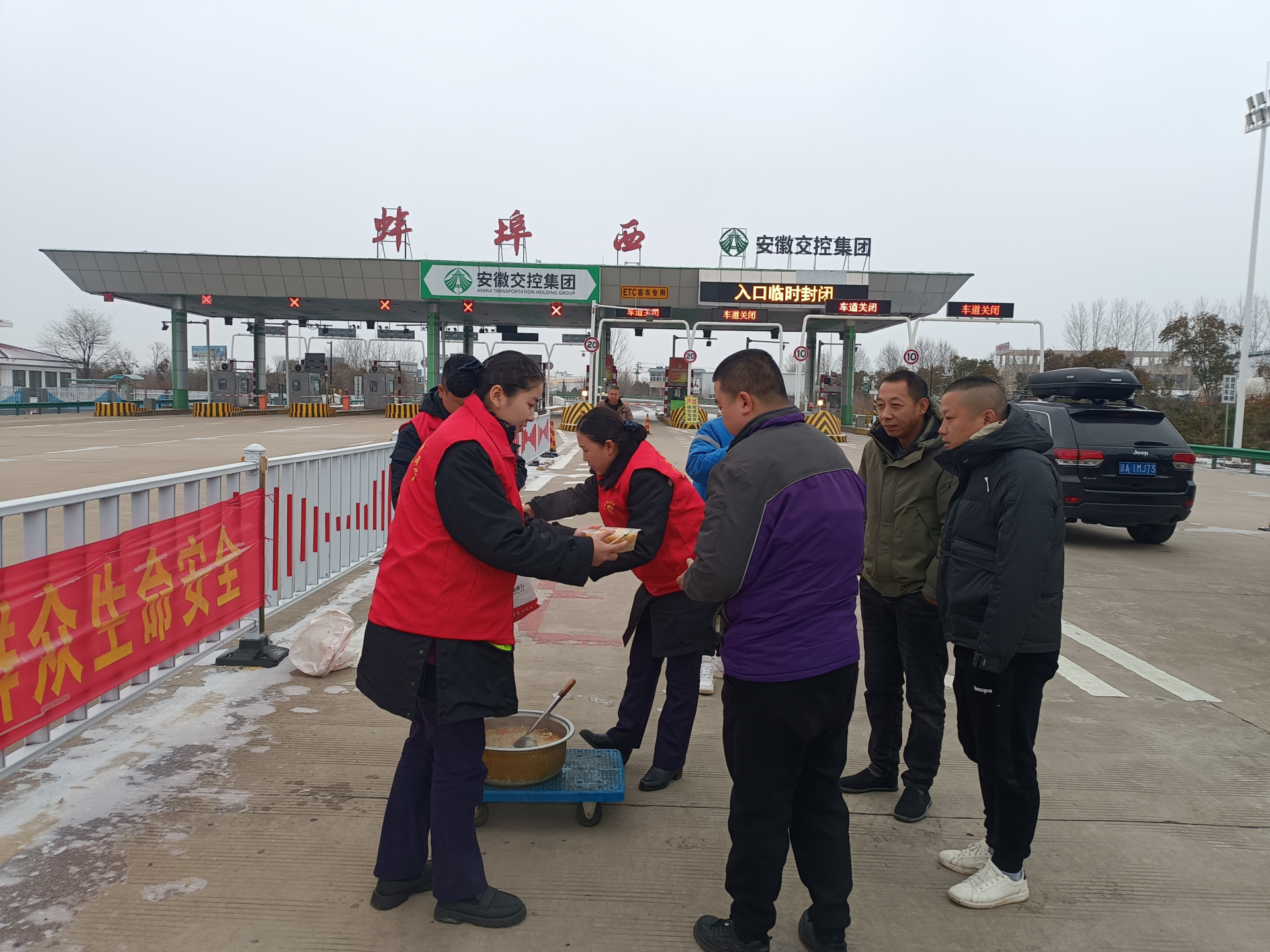 受冰雪天气影响,我市多个高速路口封闭,安徽交控集团蚌埠高速管理处在全力开展铲冰除雪、保通保畅的同时,各个高速收费站纷纷行动起来,为滞留司乘人员提供免费餐,传递关爱温暖、守护美好出行,竭力为司乘平安通行保驾护航。