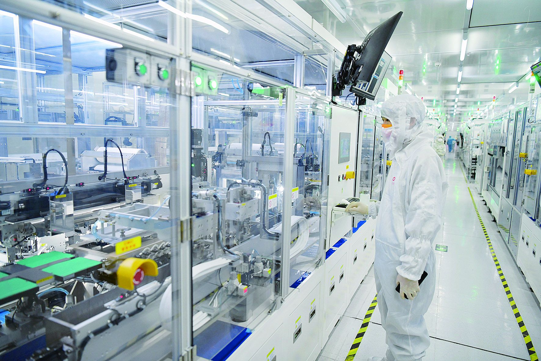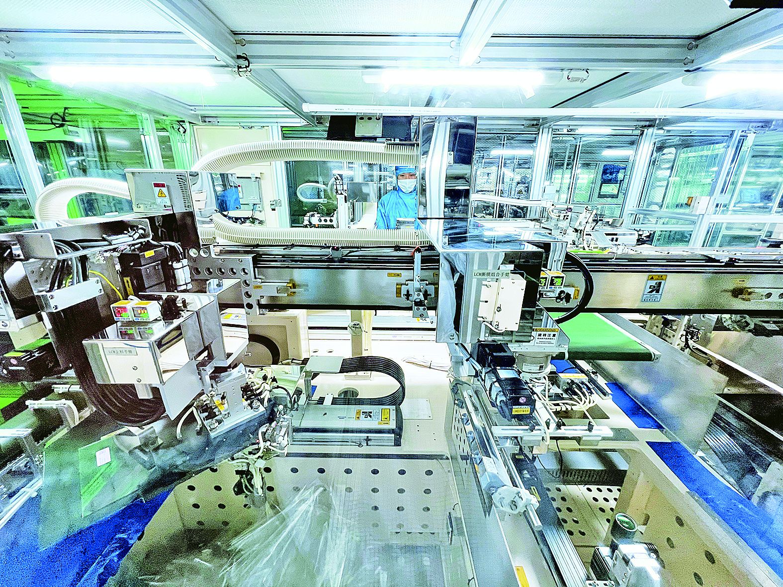 安徽帝晶光电科技有限公司生产车间,设备快速运转。