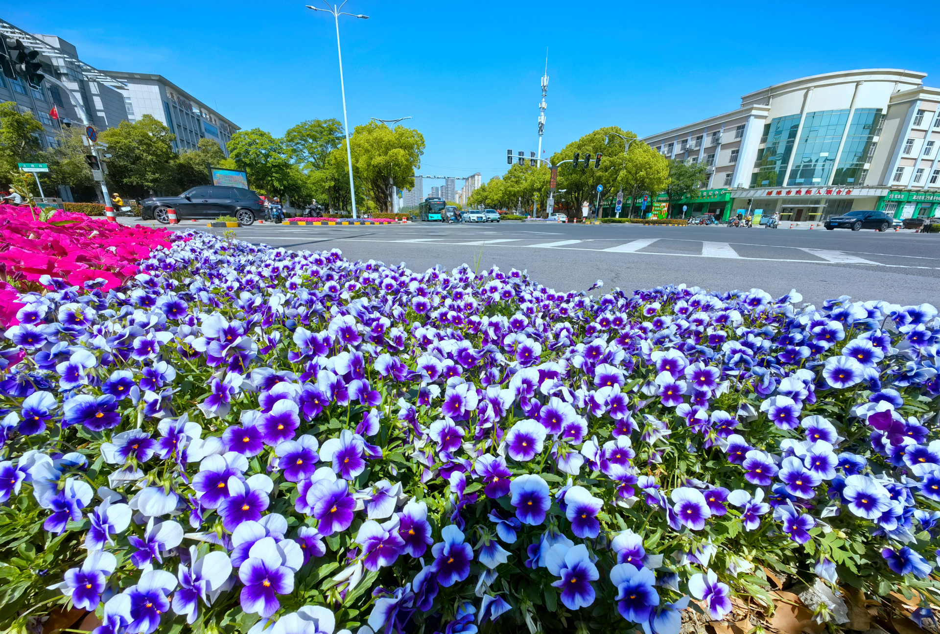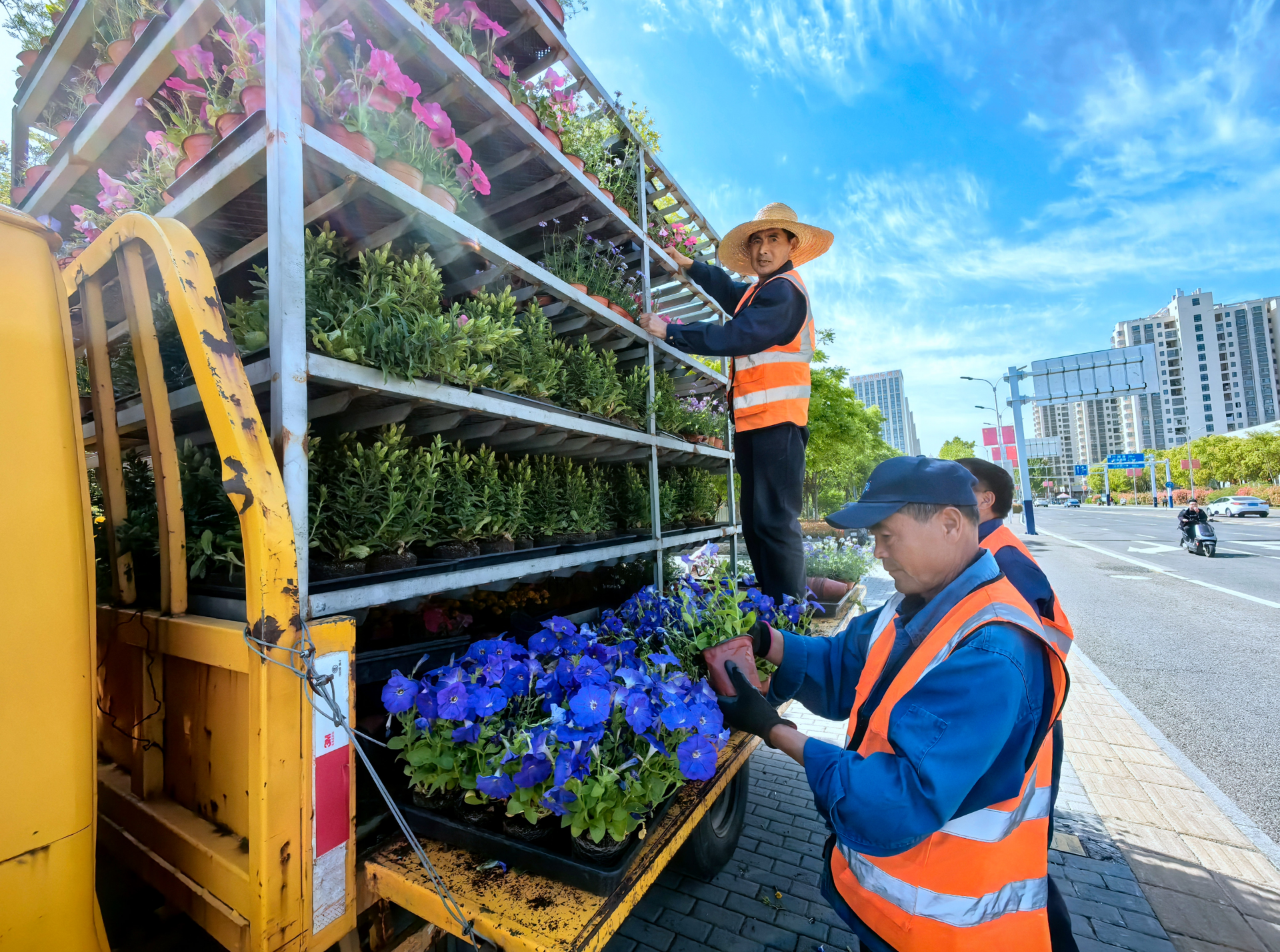 4月24日,园林人员在东海大道与龙腾路路口栽种花草。近日,市园林部门“花满珠城”第二季度花卉栽植项目启动,在市民广场、津浦大塘公园、东海大道、黄山大道等重要道路、游园栽植风铃草、大花海棠、牵牛、一串红等时令草花10万余株,迎接五一小长假的到来。