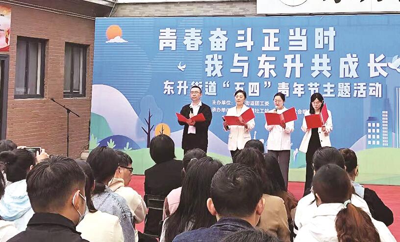 近日,龙子湖区东升街道举办“青春奋斗正当时 我与东升共成长”“五四”青年节主题活动,100余位团员青年结合工作经历,通过文艺汇演展示属于他们的青春,表达敢于担当的责任与勇气,凝聚青春向心力。 通讯员 赵琳 摄