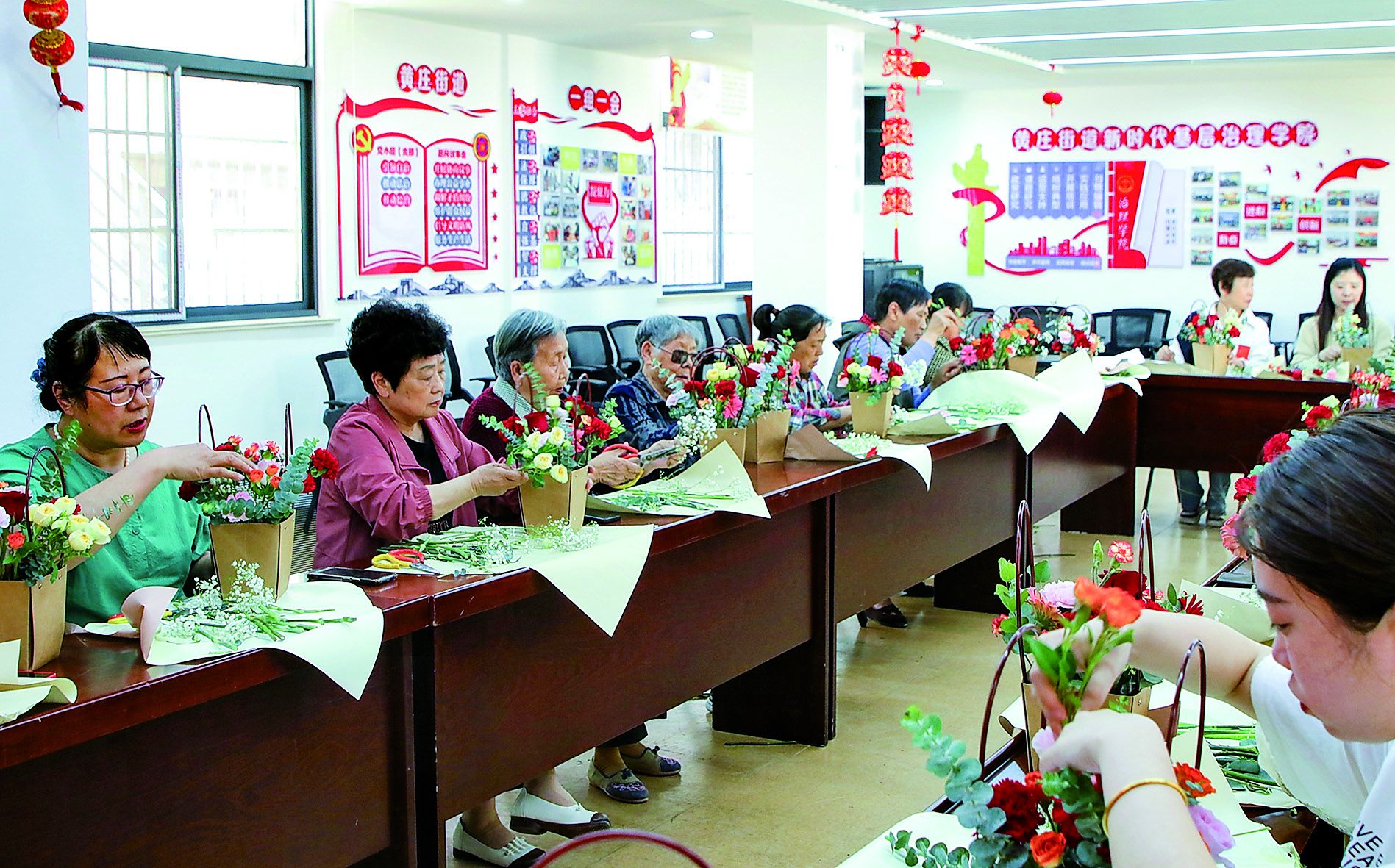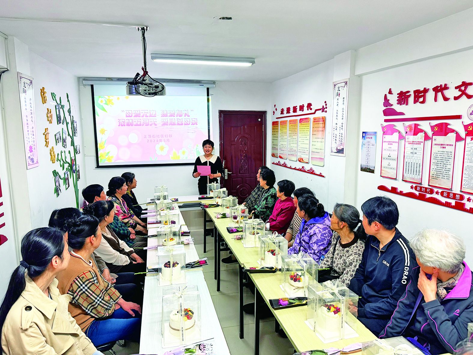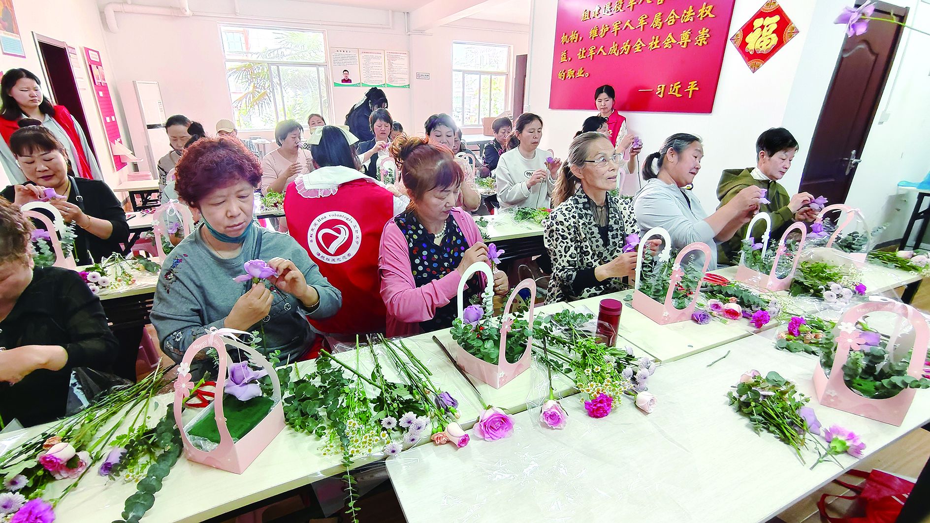 5月8日,黄庄街道东方红社区举办“爱心送母亲”手工插花活动,居民们学习花艺知识并制作插花作品,营造感恩母爱、关爱母亲的氛围。