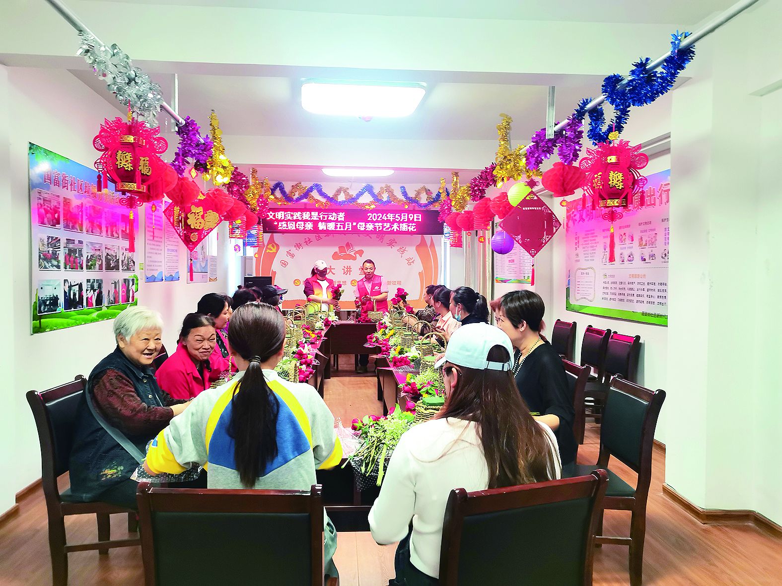 5月10日,海航社区新时代文明实践站开展“以花为礼·以爱为名”母亲节主题活动,提升母亲们的幸福感。