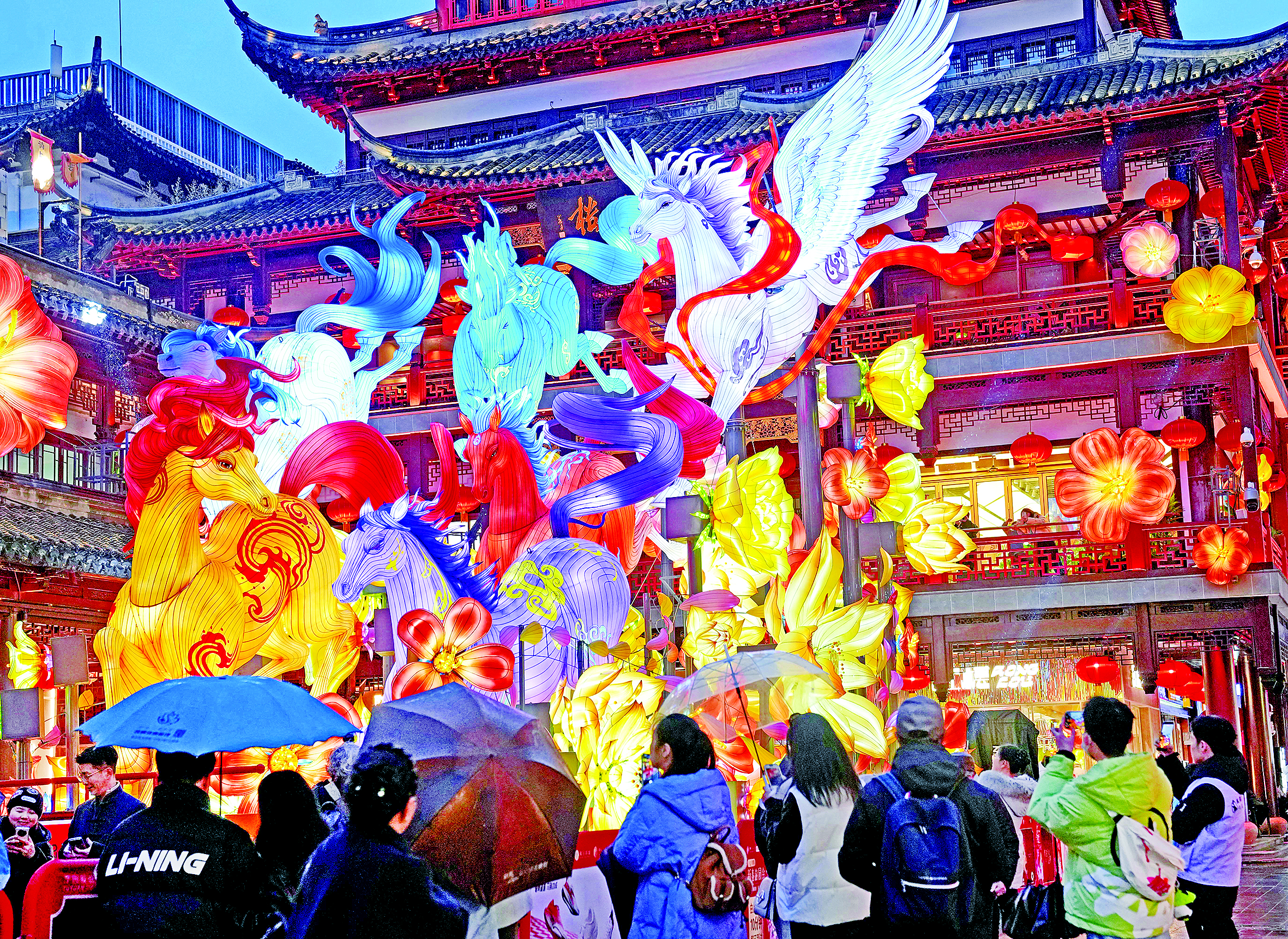 1月26日,在豫园商城中心广场上,游客在马年主题灯组“骏驰九州,步步生花”前驻足。1月26日晚,以“以梦为马,旷野生花”为主题的2026上海豫园民俗艺术灯会正式亮灯,开启为期36天的海派年味视觉盛宴。 新华社记者 刘颖 摄