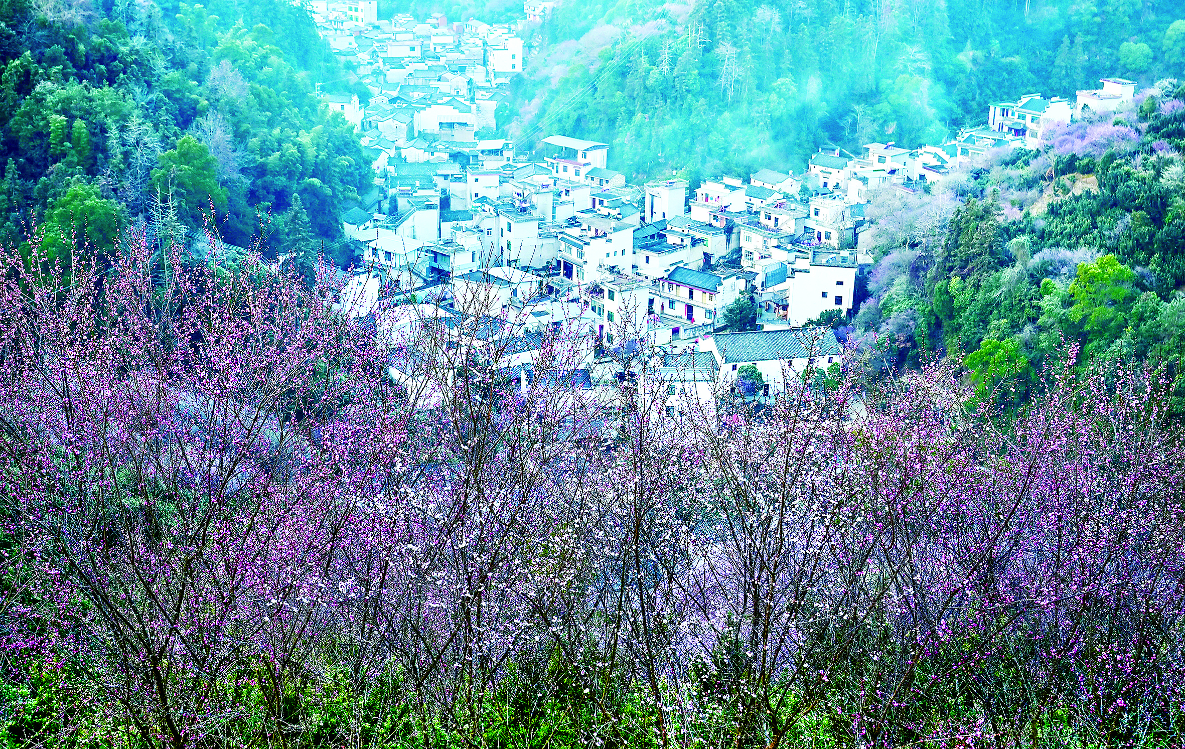 2月9日拍摄的歙县卖花渔村景色。近日,在安徽省黄山市歙县雄村镇卖花渔村,漫山遍野的梅花绽放,花海与徽派村落民居相映成趣,景美如画。 新华社记者 周牧 摄