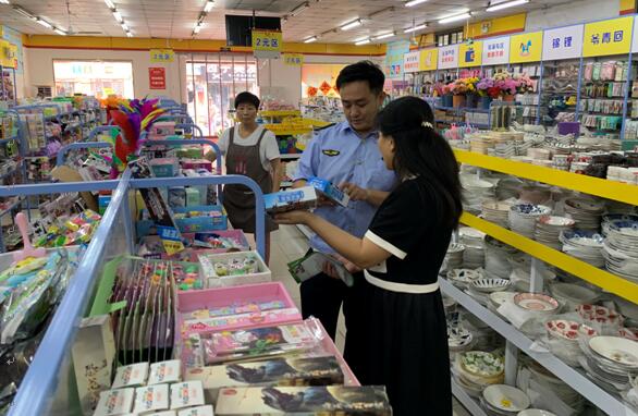 联合检查组重点检查了辖区新城实验学校临港校区、二十一中、长淮小学周边超市、文具店销售的书籍、文具、玩具等产品,认真查看了是否存在销售非法出版物及不适宜青少年阅读的书籍画册、是否销售问题地图、地球仪,经营许可证照是否齐全、教辅资料是否存在盗版和侵权等问题。