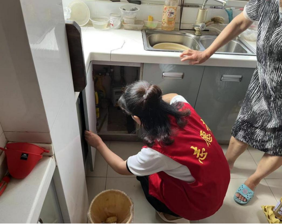 排查中,社区工作人员仔细检查了餐饮门店燃气用气安全情况,重点检查了餐饮门店内燃气罐软管是否老化、消防通道是否畅通、灭火器是否在有效期、是否安装燃气报警器等。
