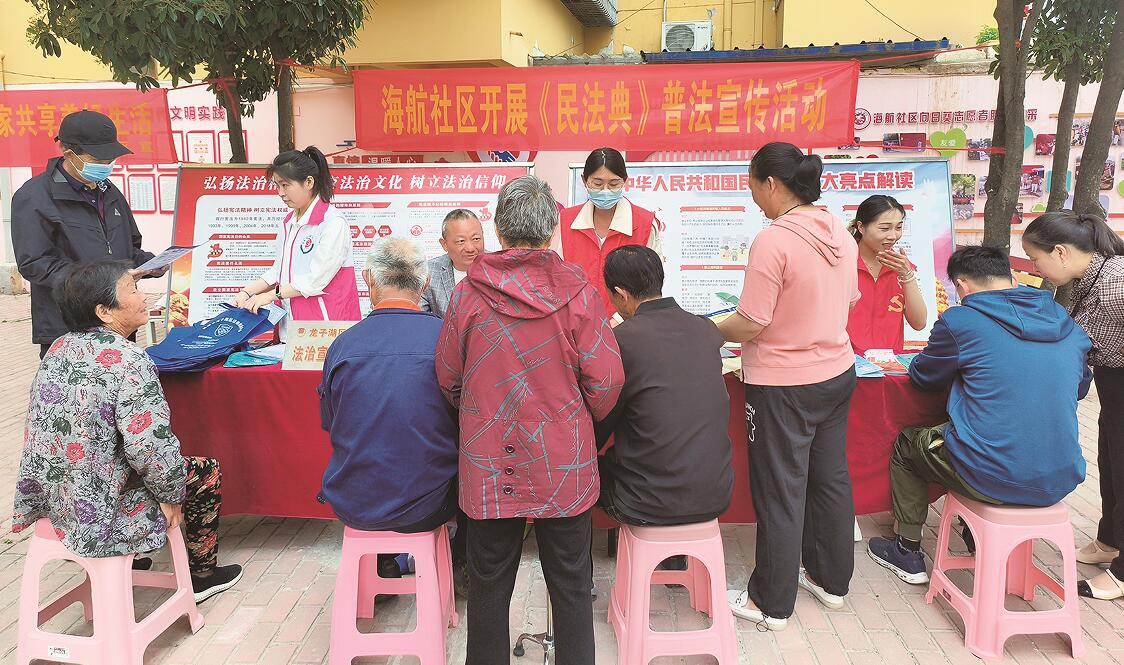 5月26日,海航社区开展民法典普法宣传活动,法律顾问们用朴实语言、生动事例,向居民普及民法典知识,增强居民遇事找法、办事依法、解决问题用法、化解矛盾靠法的法治观念。