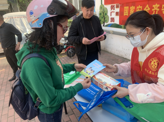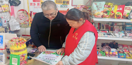 食品安全志愿者向经营户普及食品安全知识,及法律法规政策,让经营户全面了解食品安全方面的知识,从销售渠道筑牢食品安全防线。