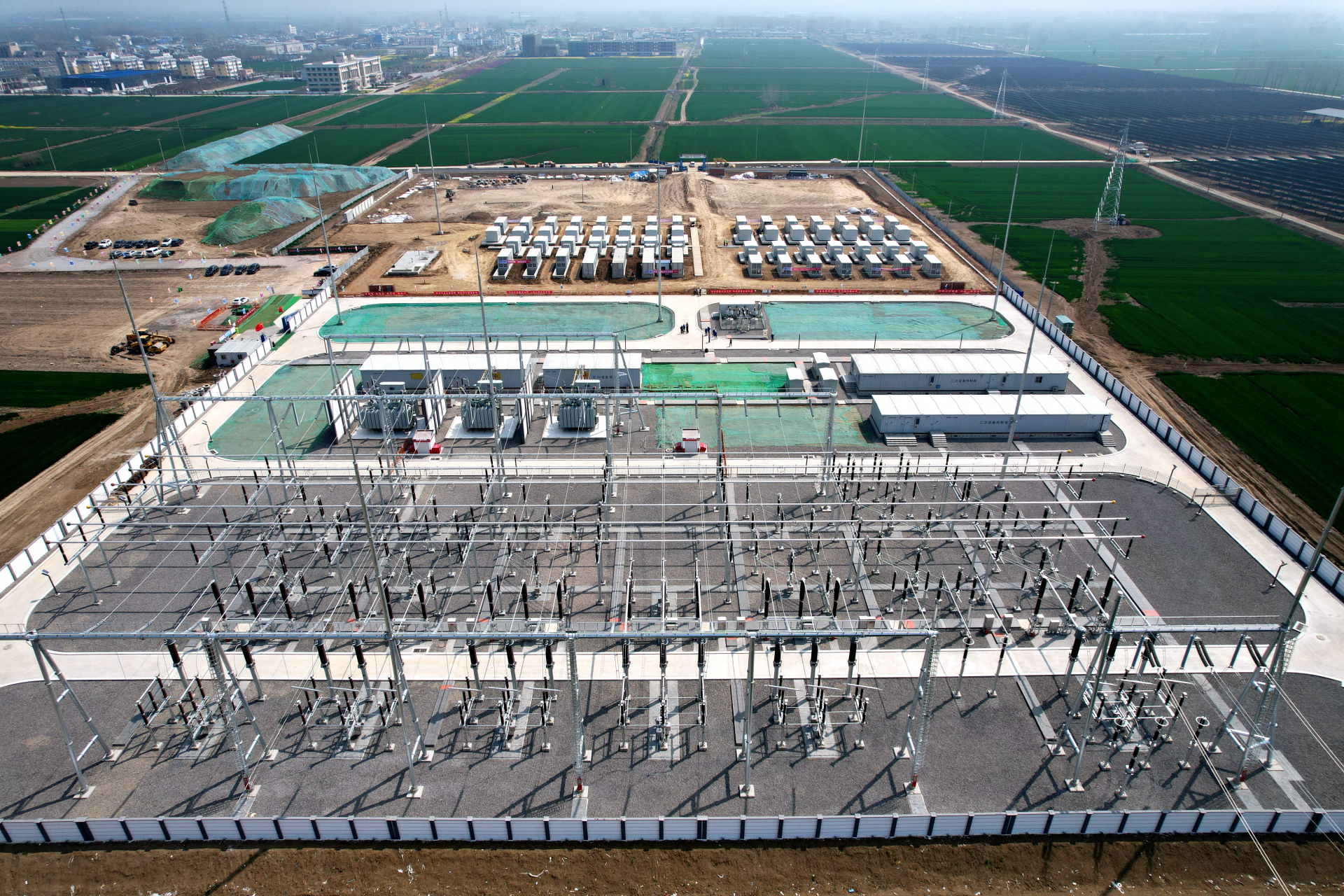 中广核固镇县风光储一体化项目规划在固镇县境内建设100MW光伏项目、300MW风电项目以及一期100MW/100MWh、二期143MW/286MWh电网侧储能项目,上述项目均共用一座占地面积101亩的220KV升压站,是全省占地面积最大的升压站。